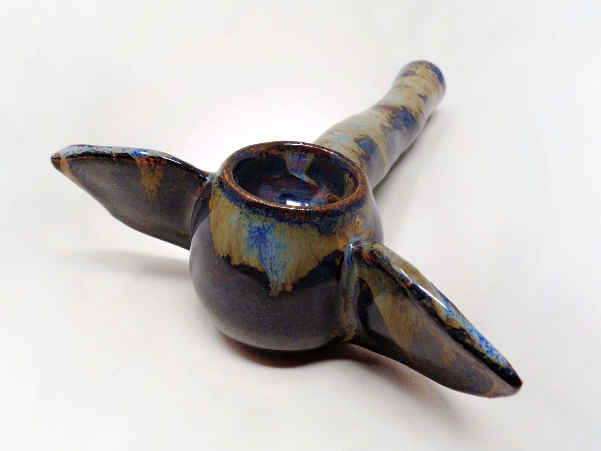 With a bowl as deep as the ears are big, Melted Elliepot is wreck you. Its glaze is a combination of onyx, indigo and runny sulfur, decorated with traces of crimson. Looking into its trunk, you’ll find a fine trail of blood running along the bottom.