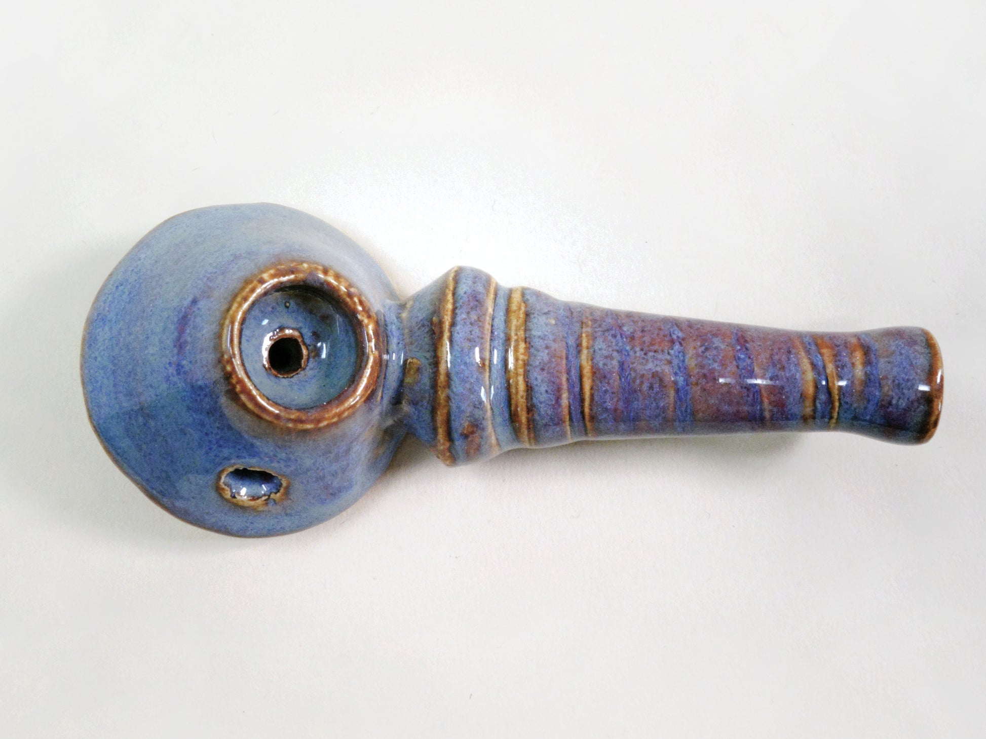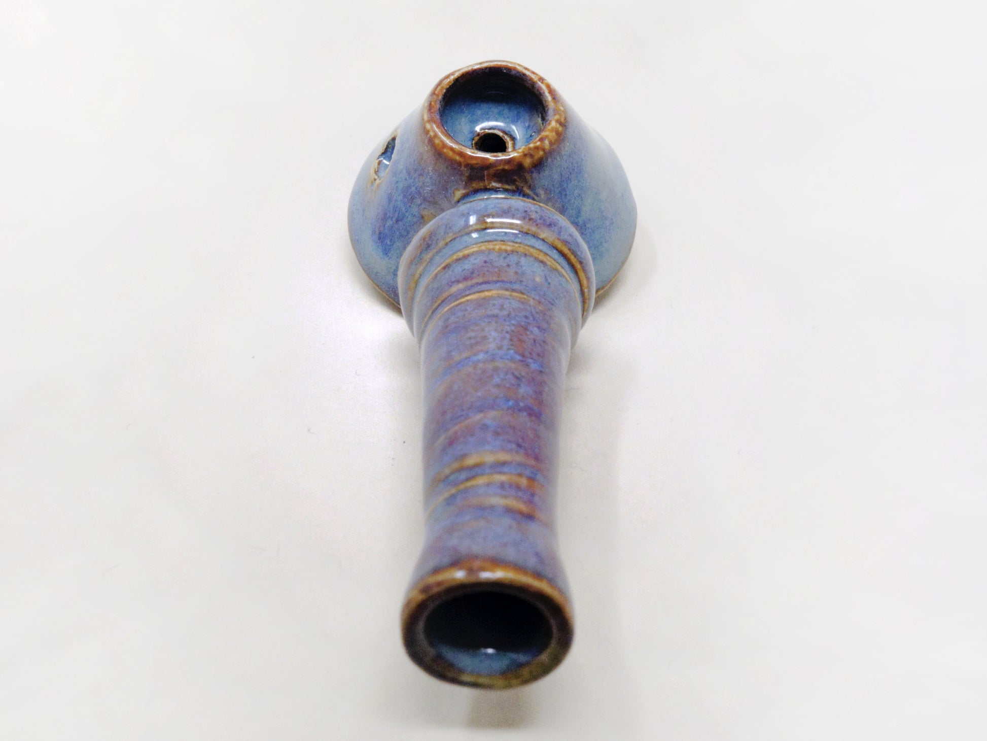 A truly one-of-a-kind piece, the Wiz’s glaze is a rare blend of aquamarine and liquid rose. His pyramid bowl and wand stem were formed with alien abductions in mind. Magical and cosmic, he cares for bite-sized smokes and wants the horrors of the world to fade away.