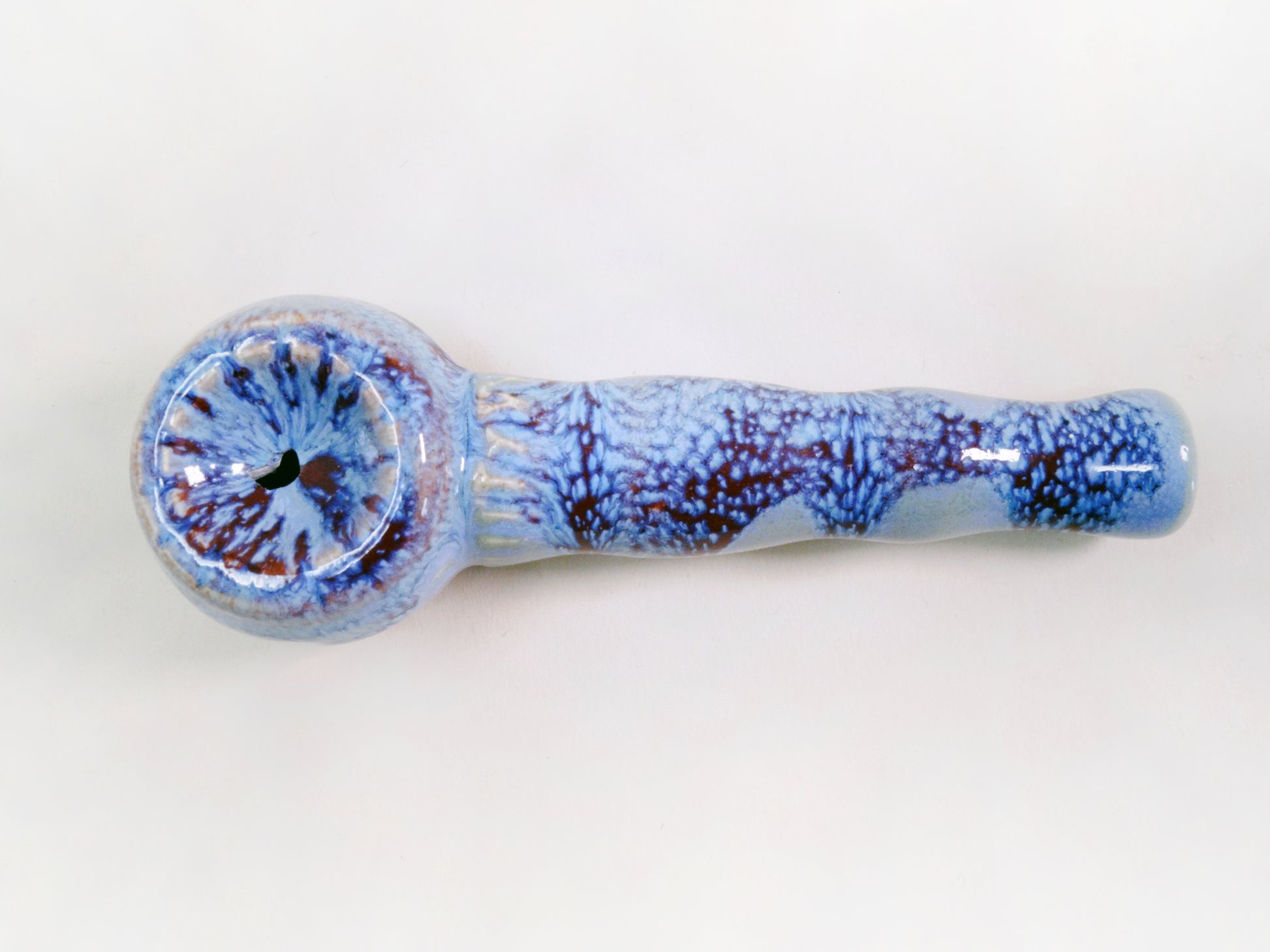 It got wrecked. You want to get wrecked? Get wrecked. And take a peek beneath the airflow sliver into the main chamber. There, you’ll find an iceberg. With small notches in the bowl where the red glaze trickles over blue, this piece will put your mind to rest over calm and stormy waters.