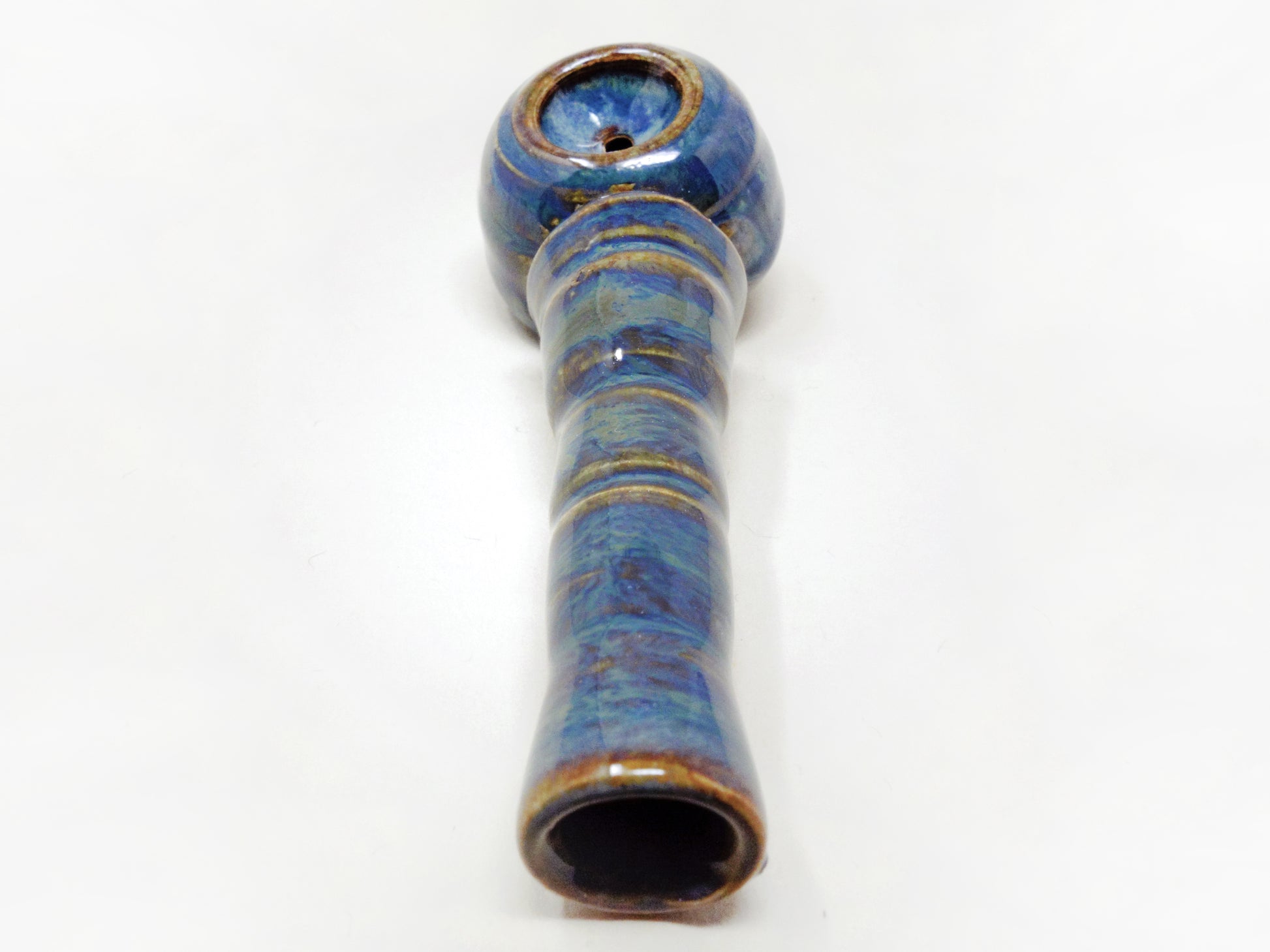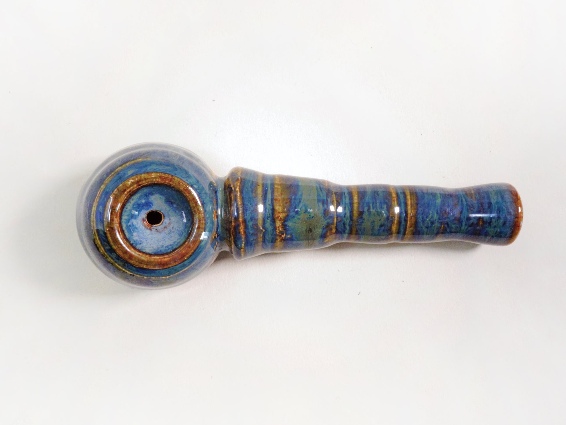The single most fascinating glaze job Lita Clay has done thus far. Forest and lime green slick over a fish-scale blue glaze, turning the first view layers translucent over frozen clay and capturing the movement of a chemical reaction.