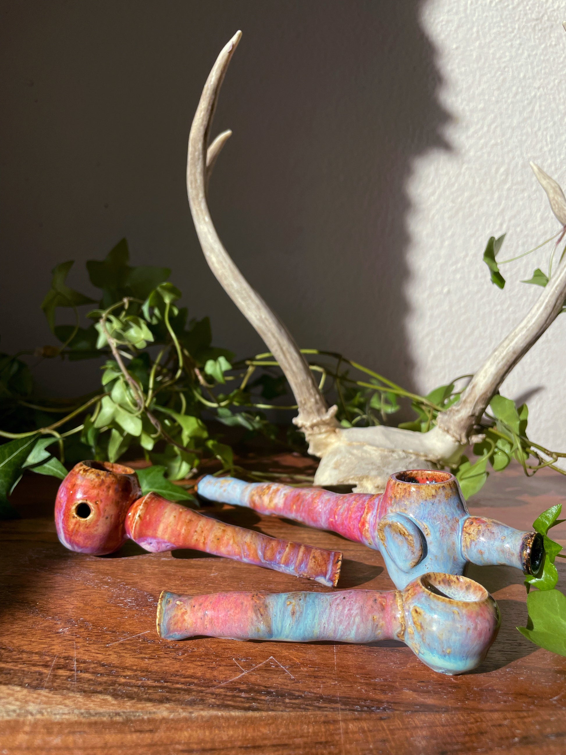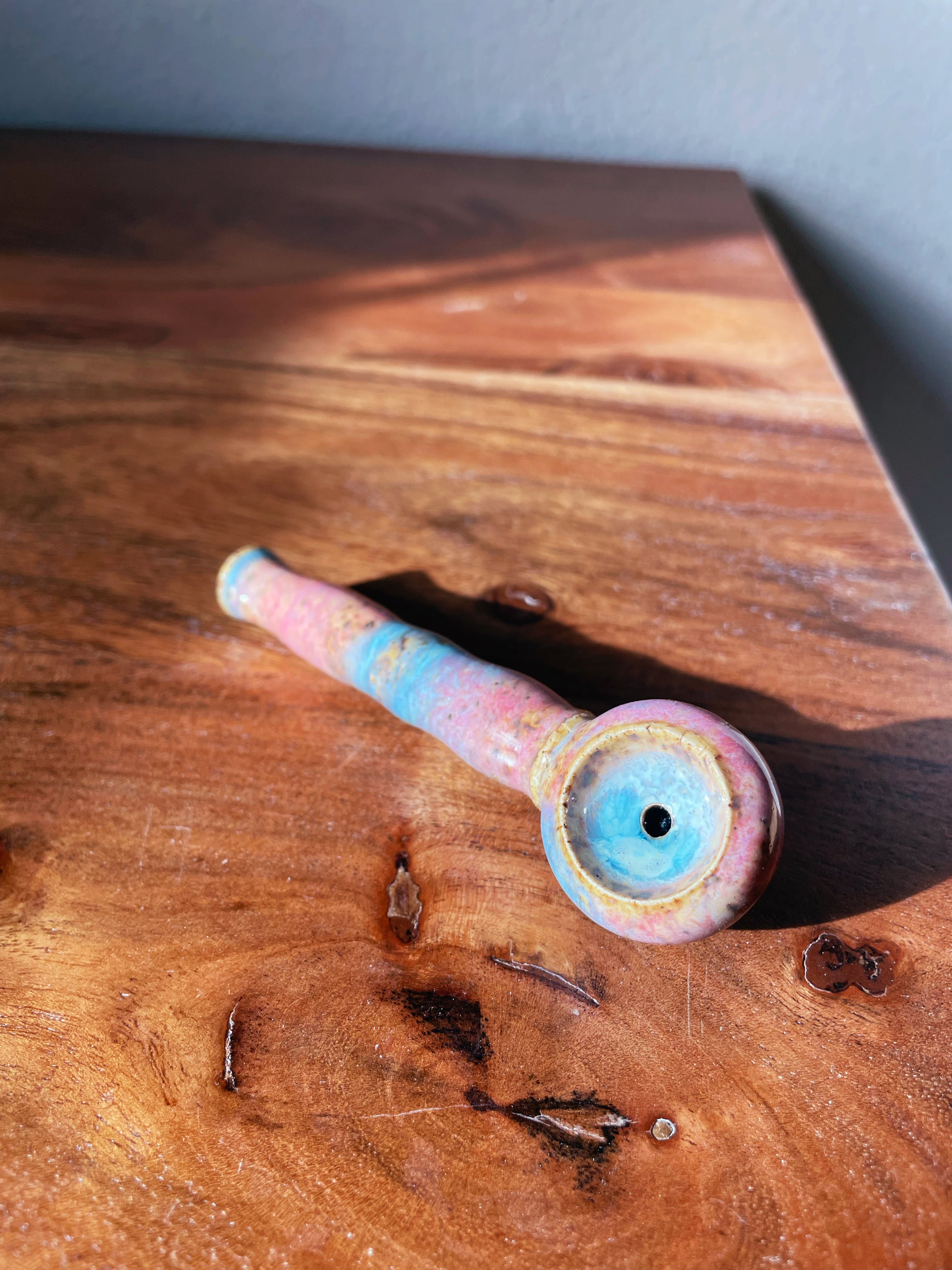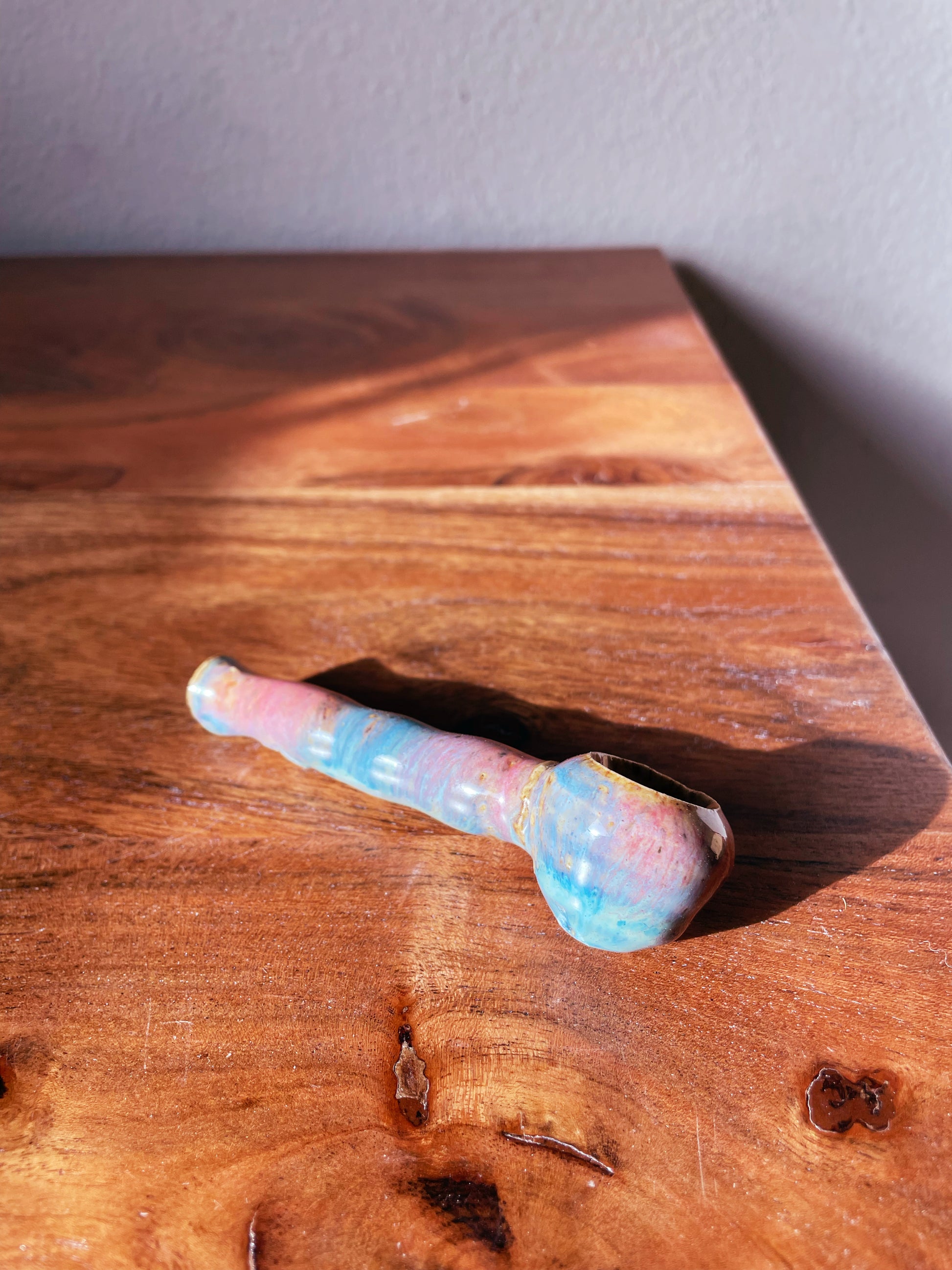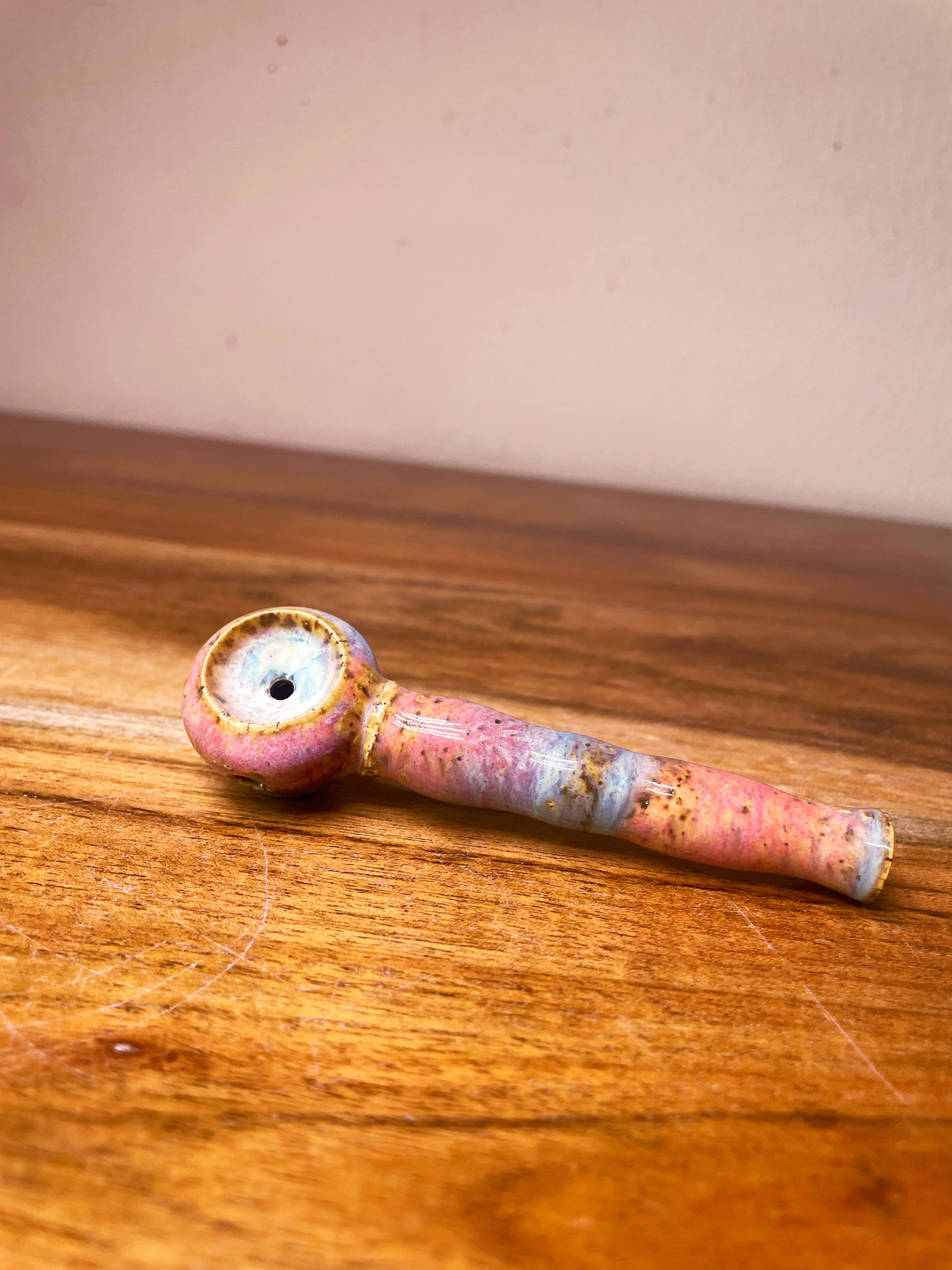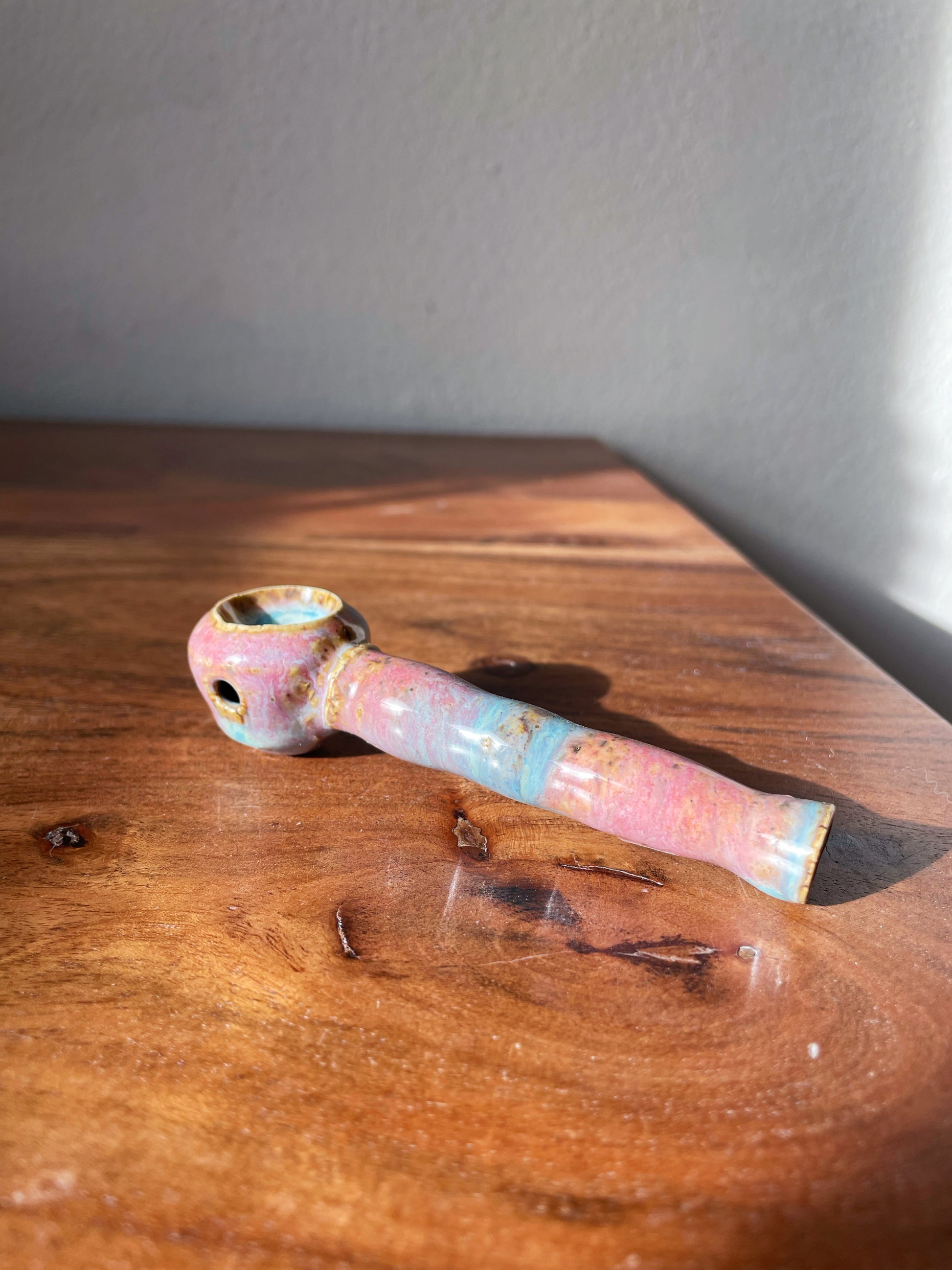 Rose and blue lapis paint a pastel bowl, sized to be portable while delivering a full hit.