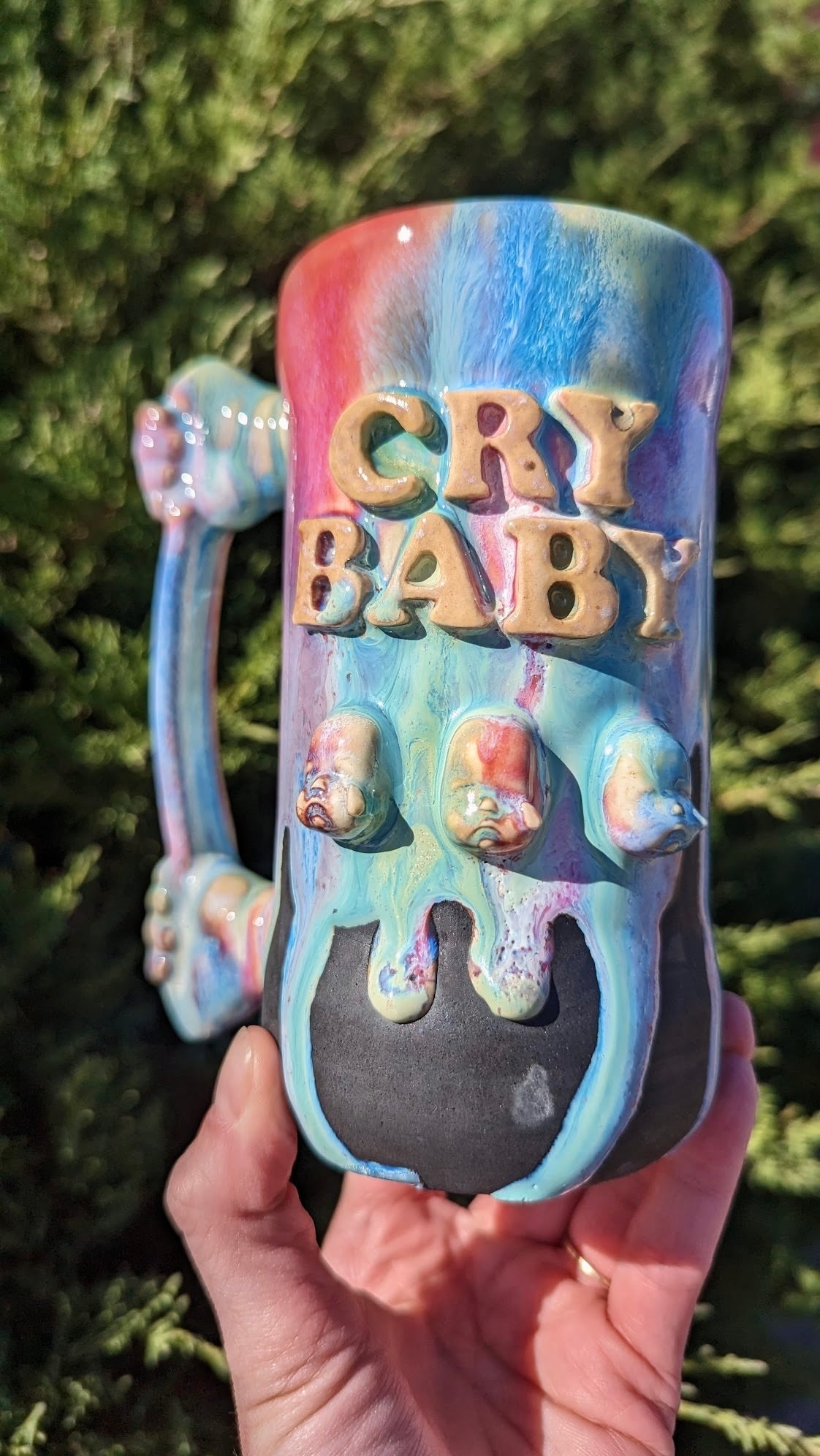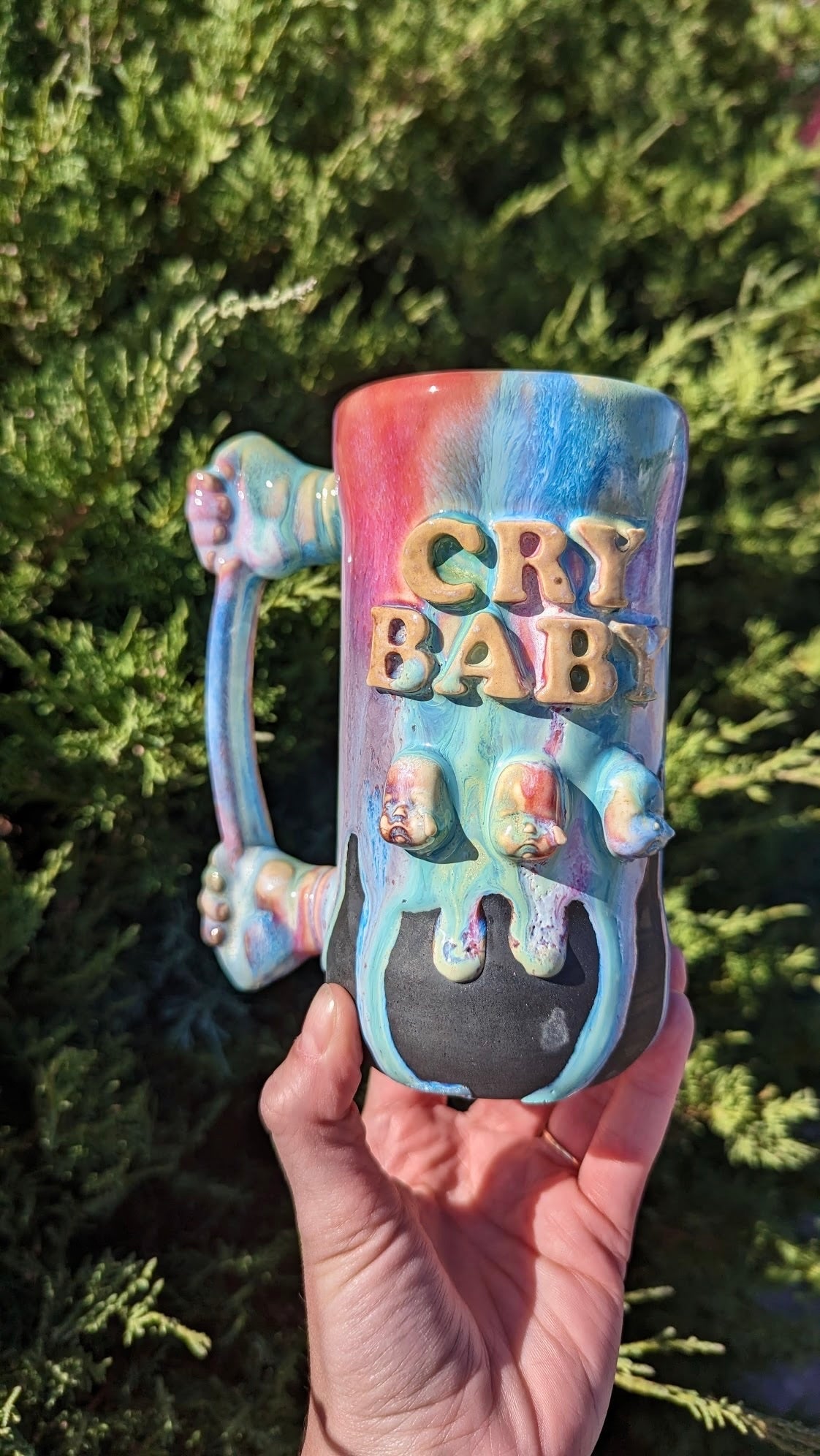 “Cry Baby” rainbow collab mug by SheWolf Studios and Lita Clay