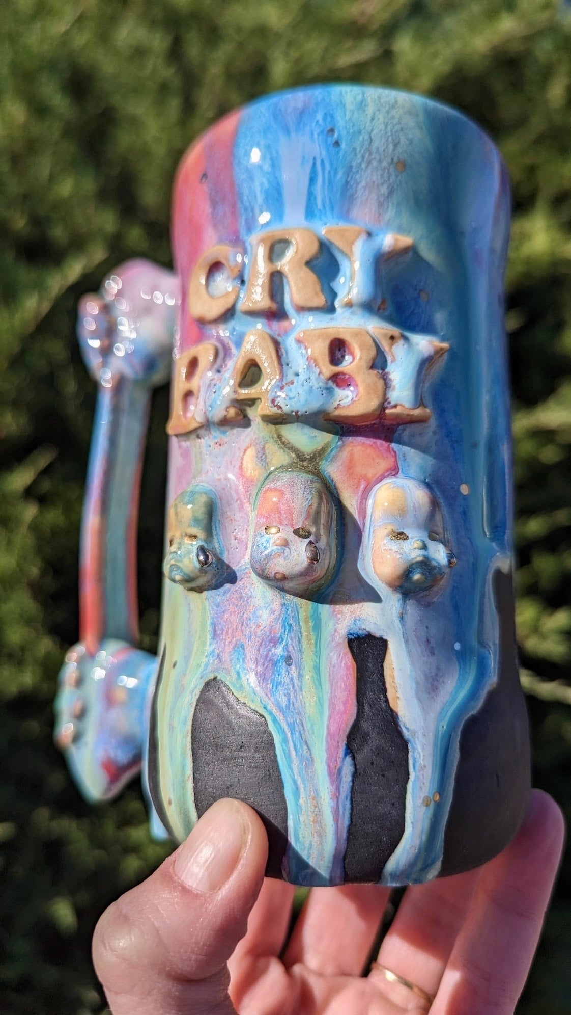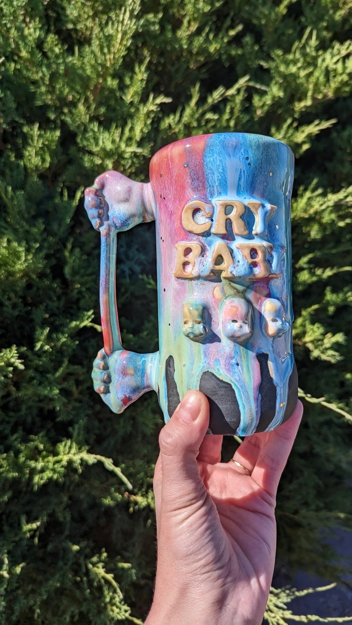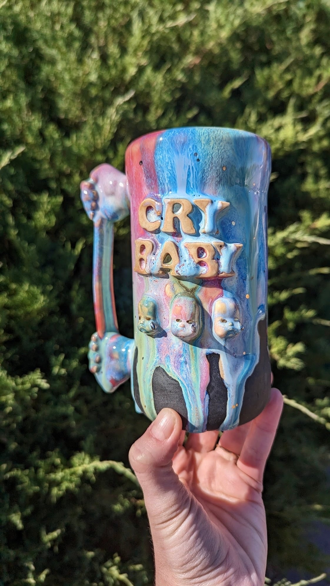 “Cry Baby” rainbow collab mug by SheWolf Studios and Lita Clay