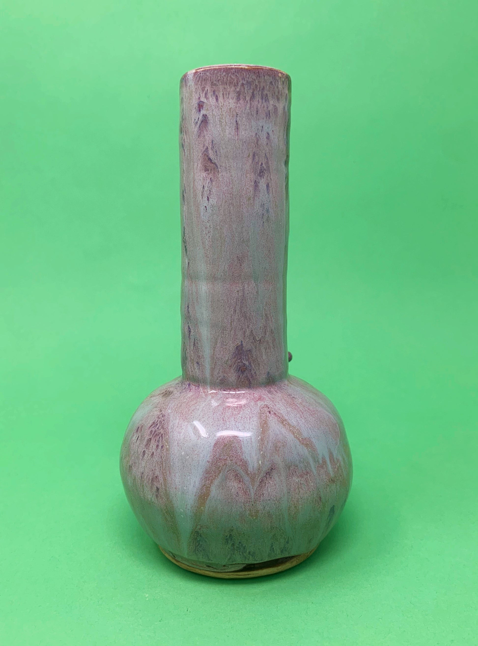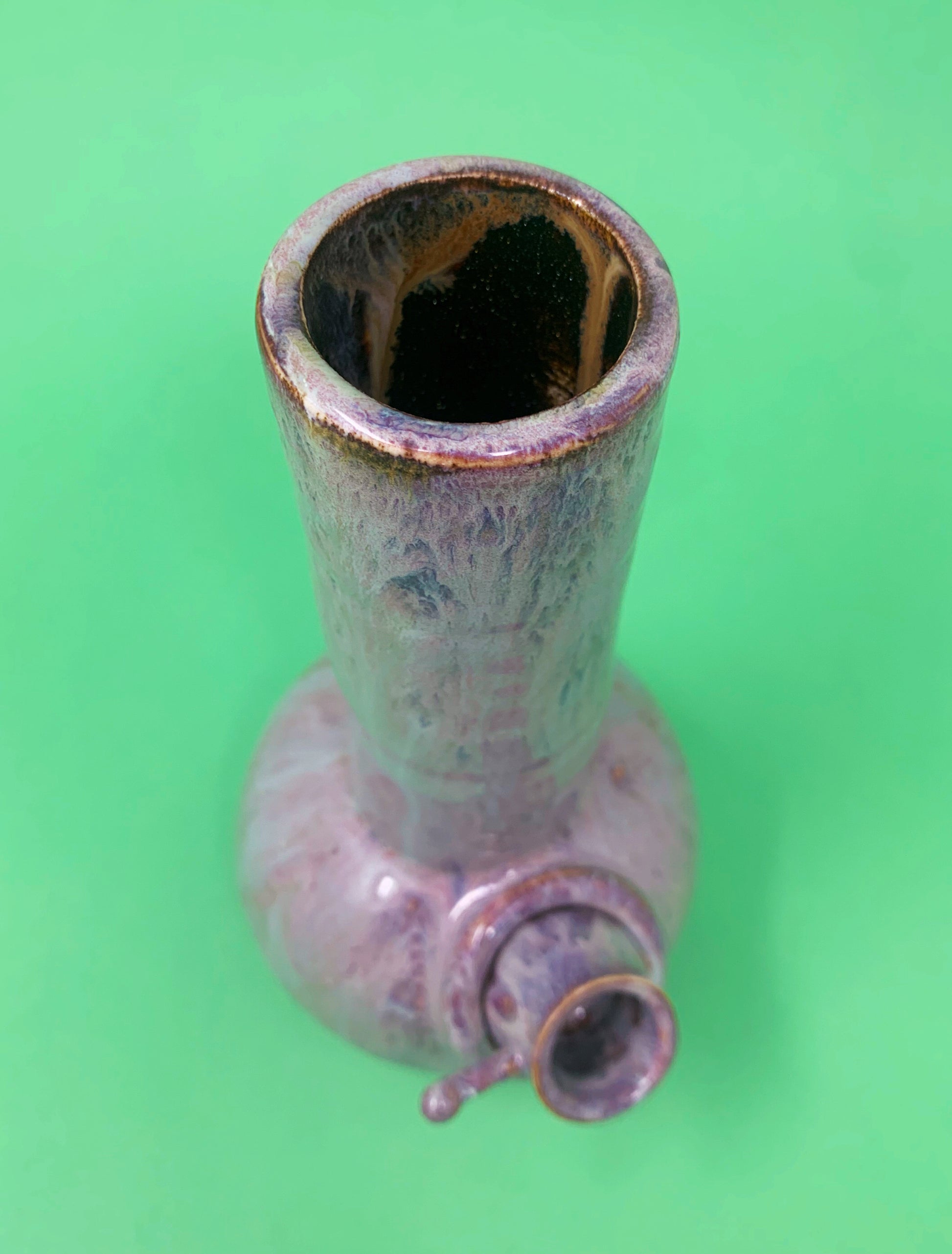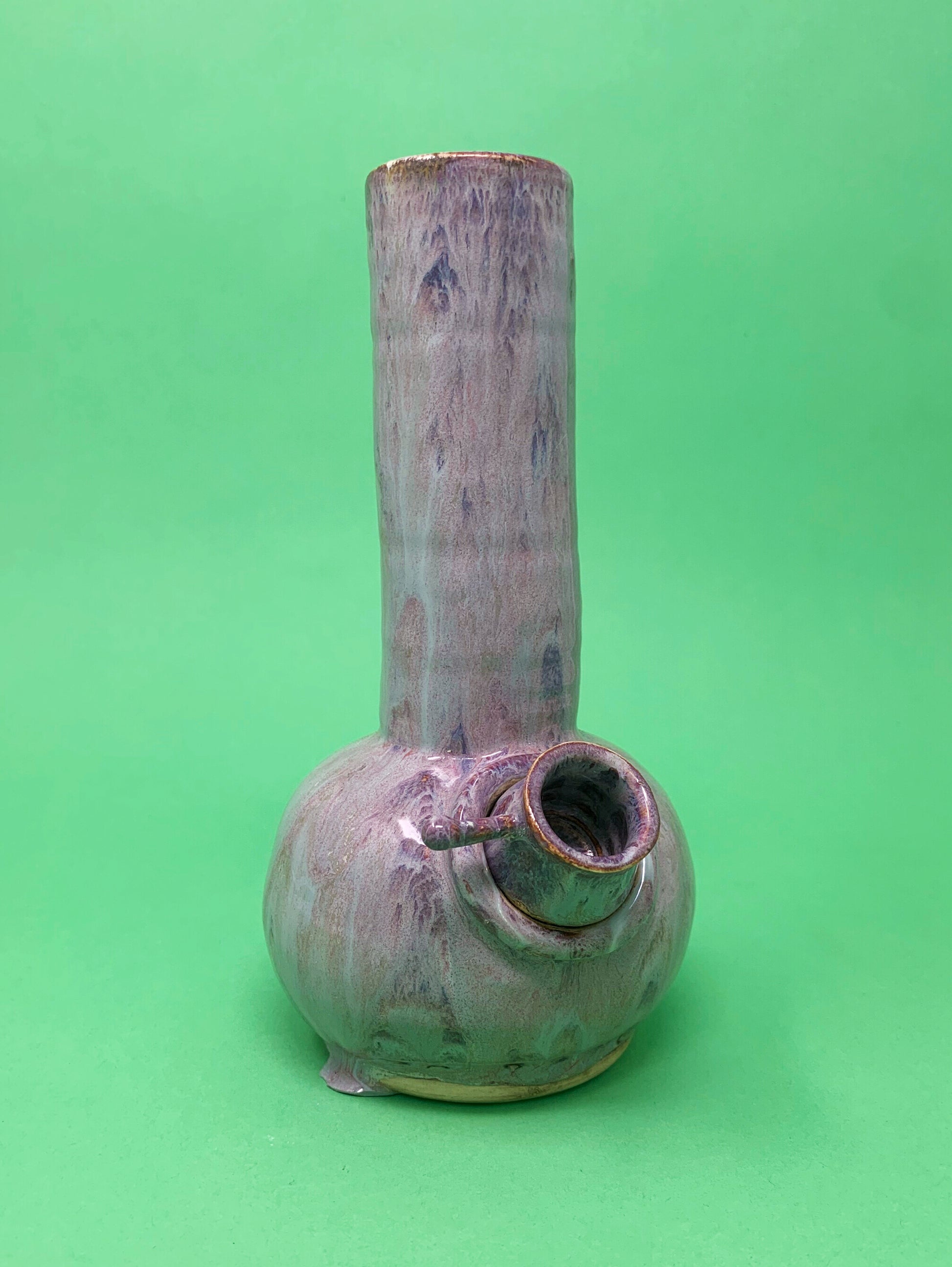Made up of a dozen pastels, Frosty Dawnson was erected in the light of dawn and serves as a beacon of calm love during even the darkest of times. Dripping with rose, violet and sky blue, and ribbed in a smooth design, this bong includes an ice-catcher and a separate bowl.