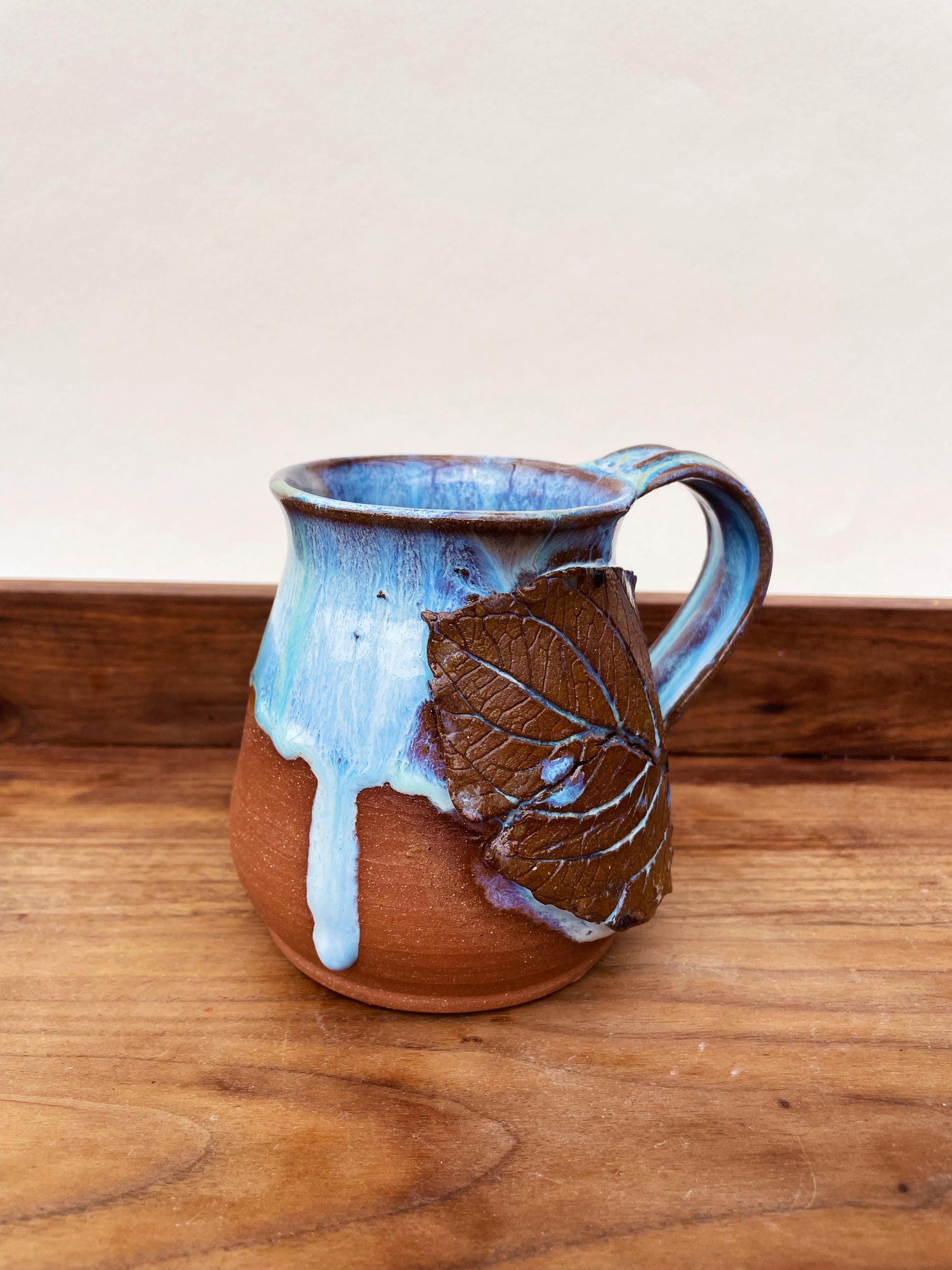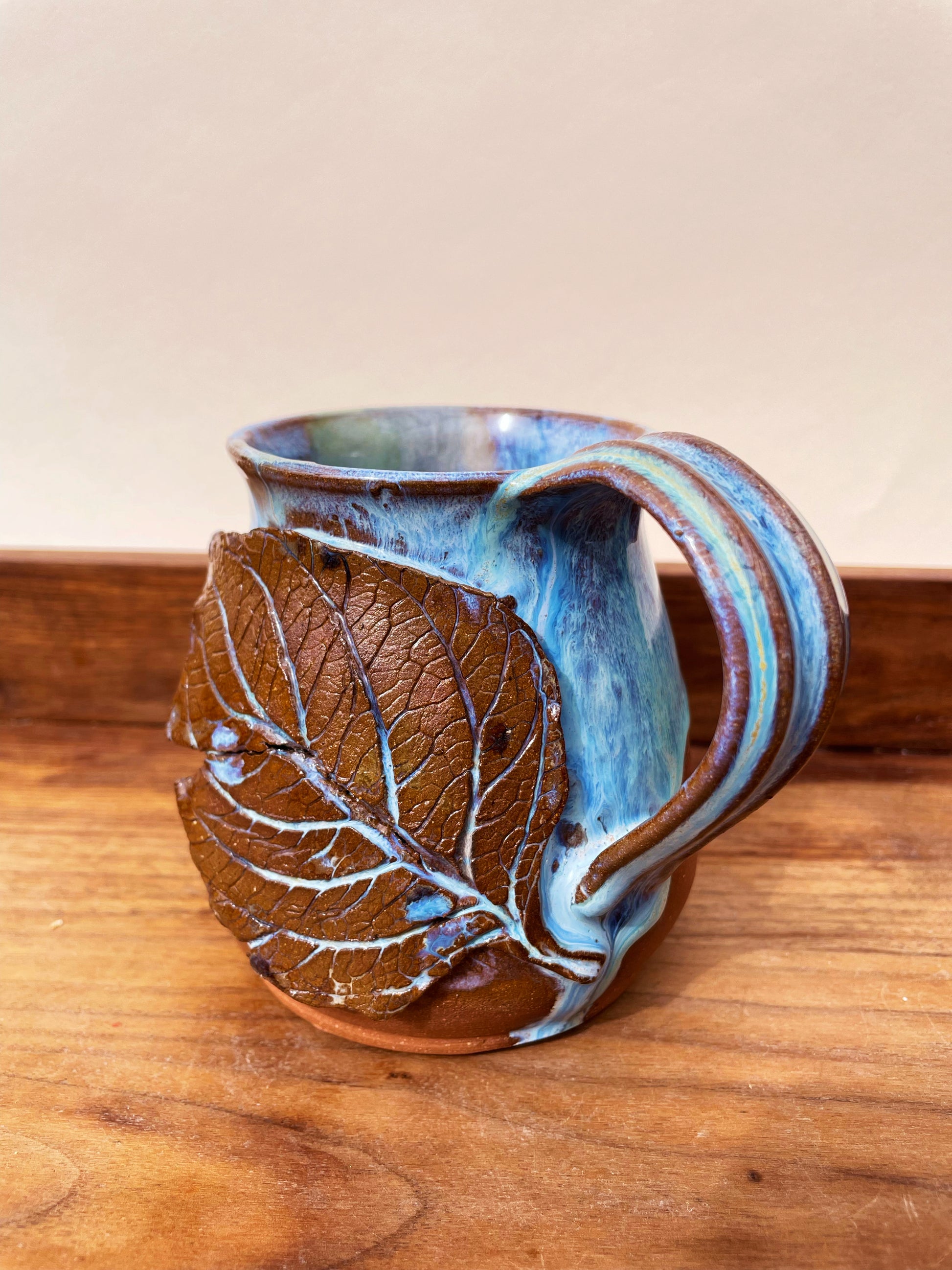 The leaves embellishing this mug we’re harvested from Lita Clay’s texture garden. No plants were harmed in the making of this mug.