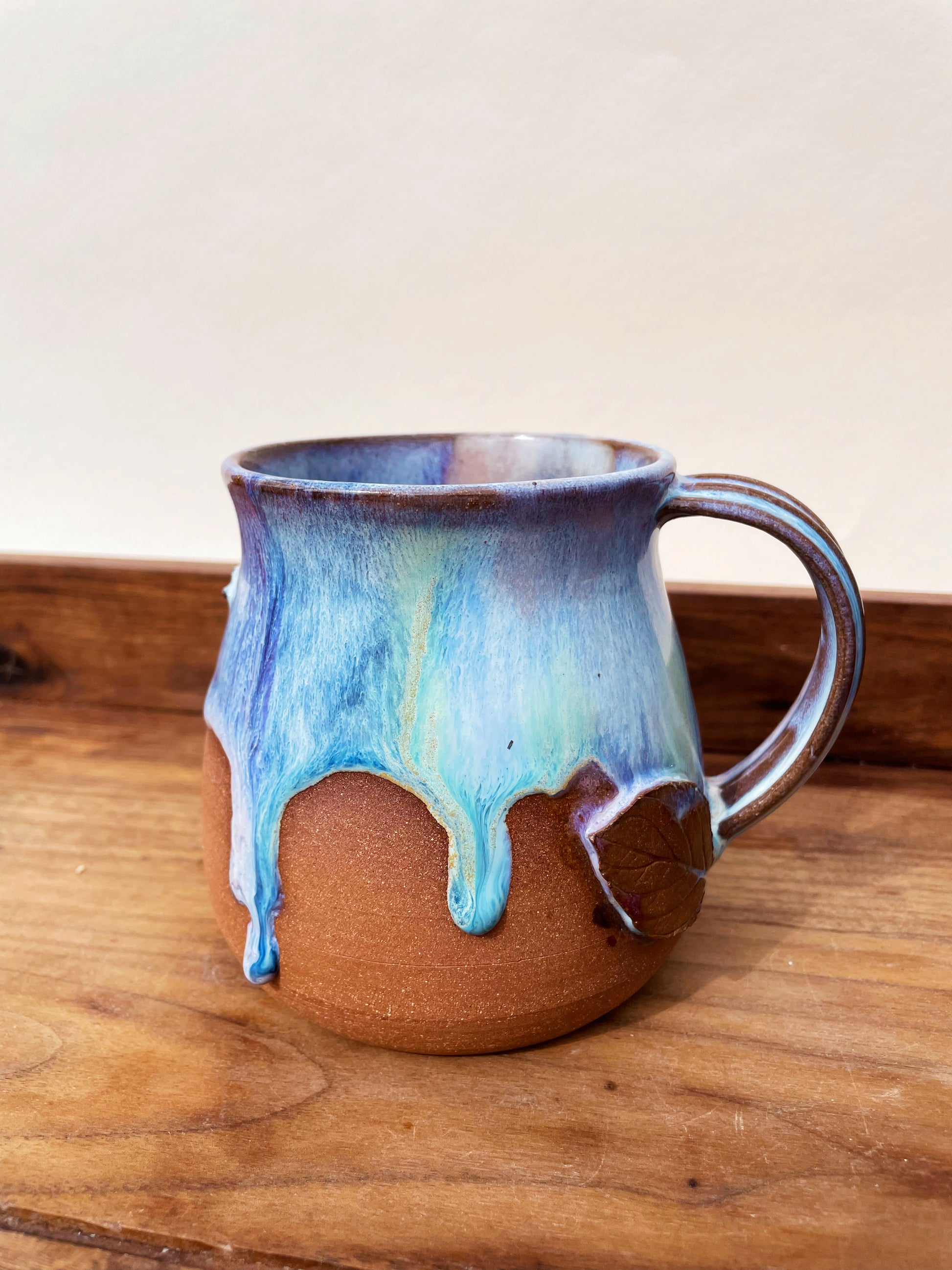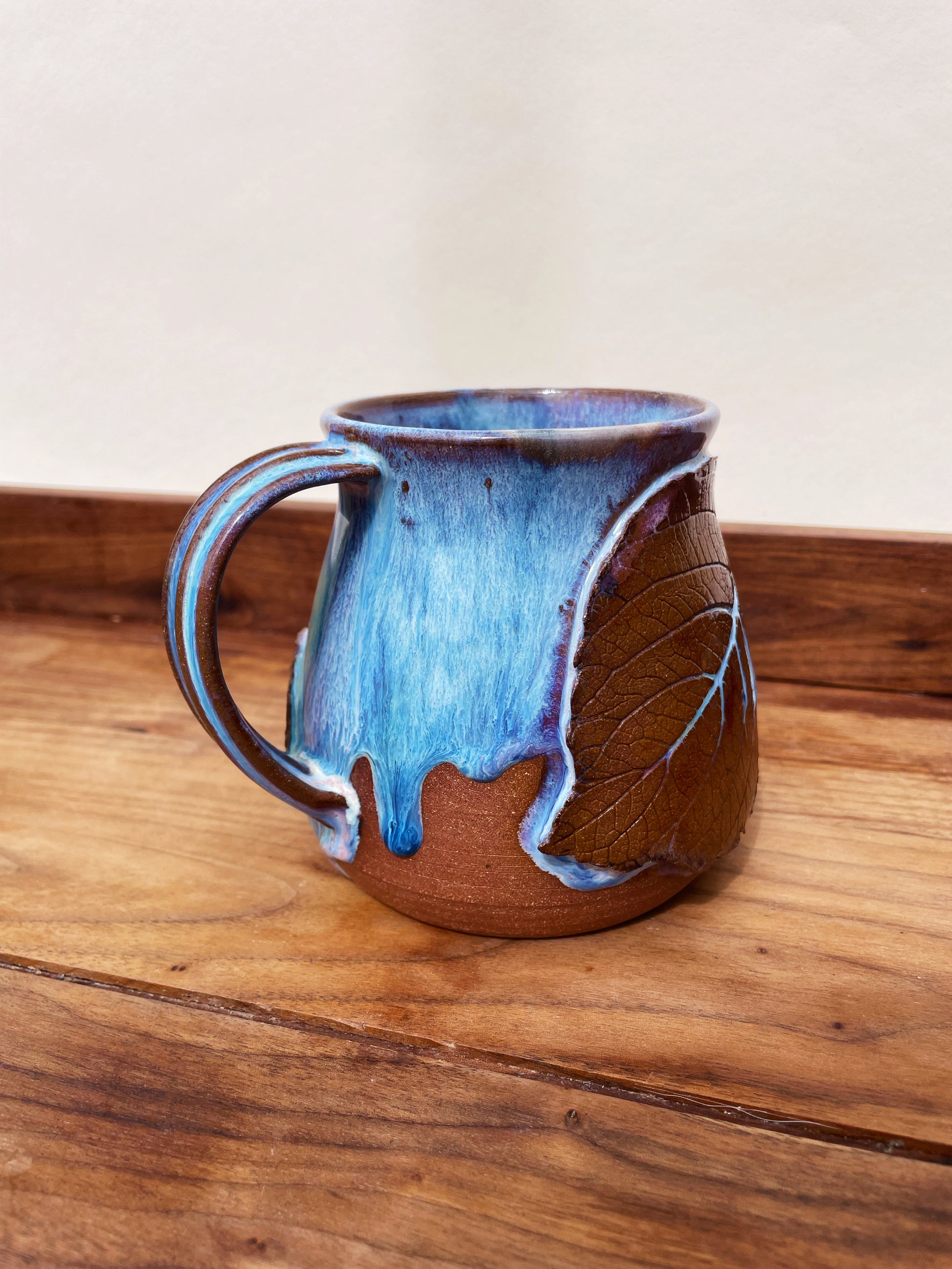 The leaves embellishing this mug we’re harvested from Lita Clay’s texture garden. No plants were harmed in the making of this mug.