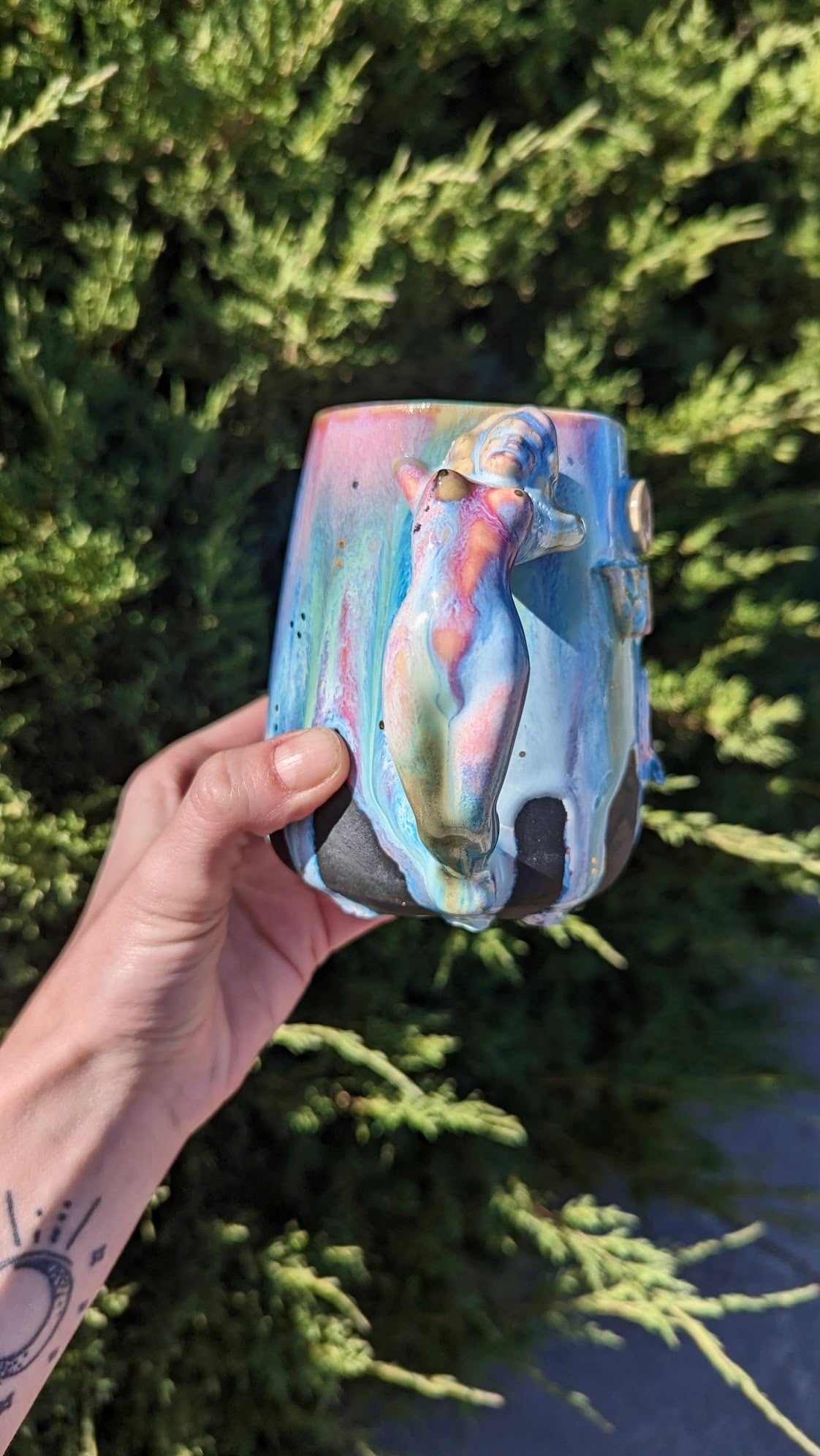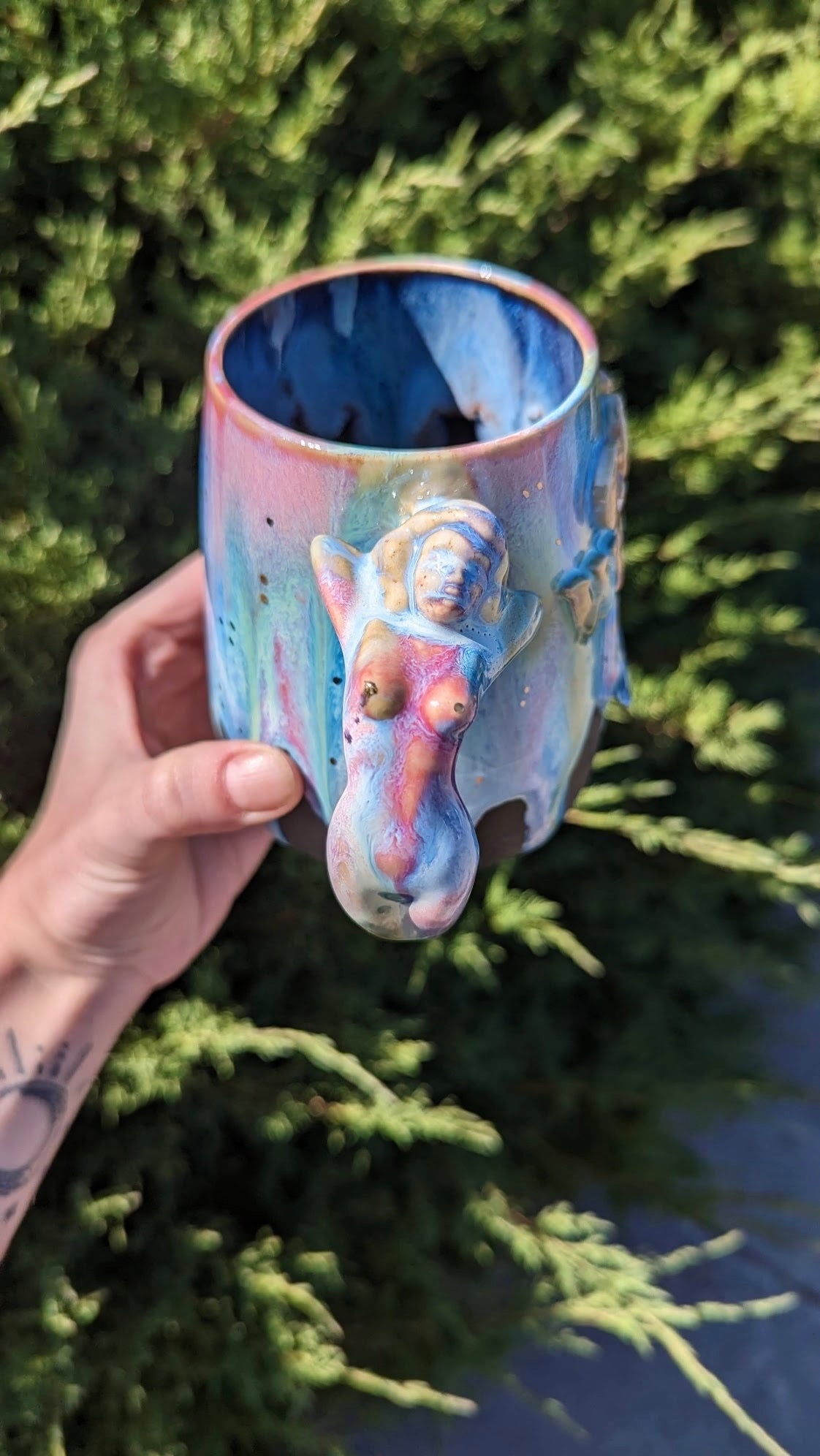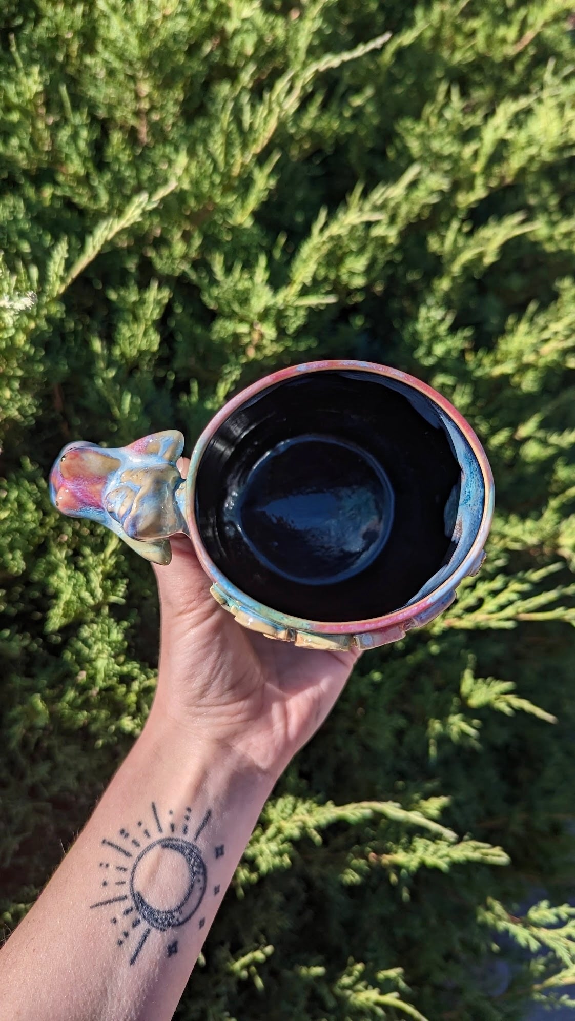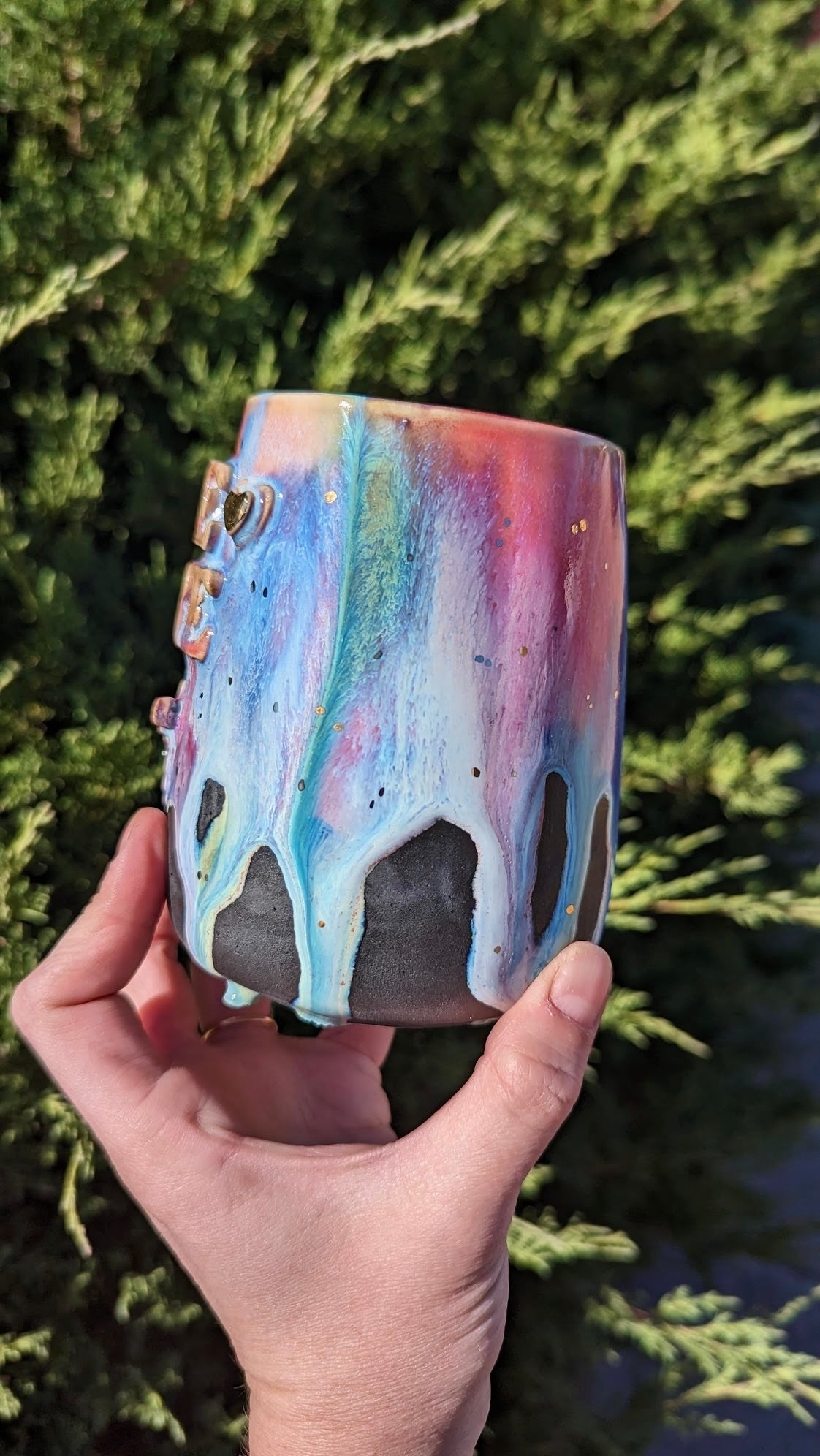 “Gore Whore” rainbow collab mug by SheWolf Studios and Lita Clay. Discounted for slightly warped rim