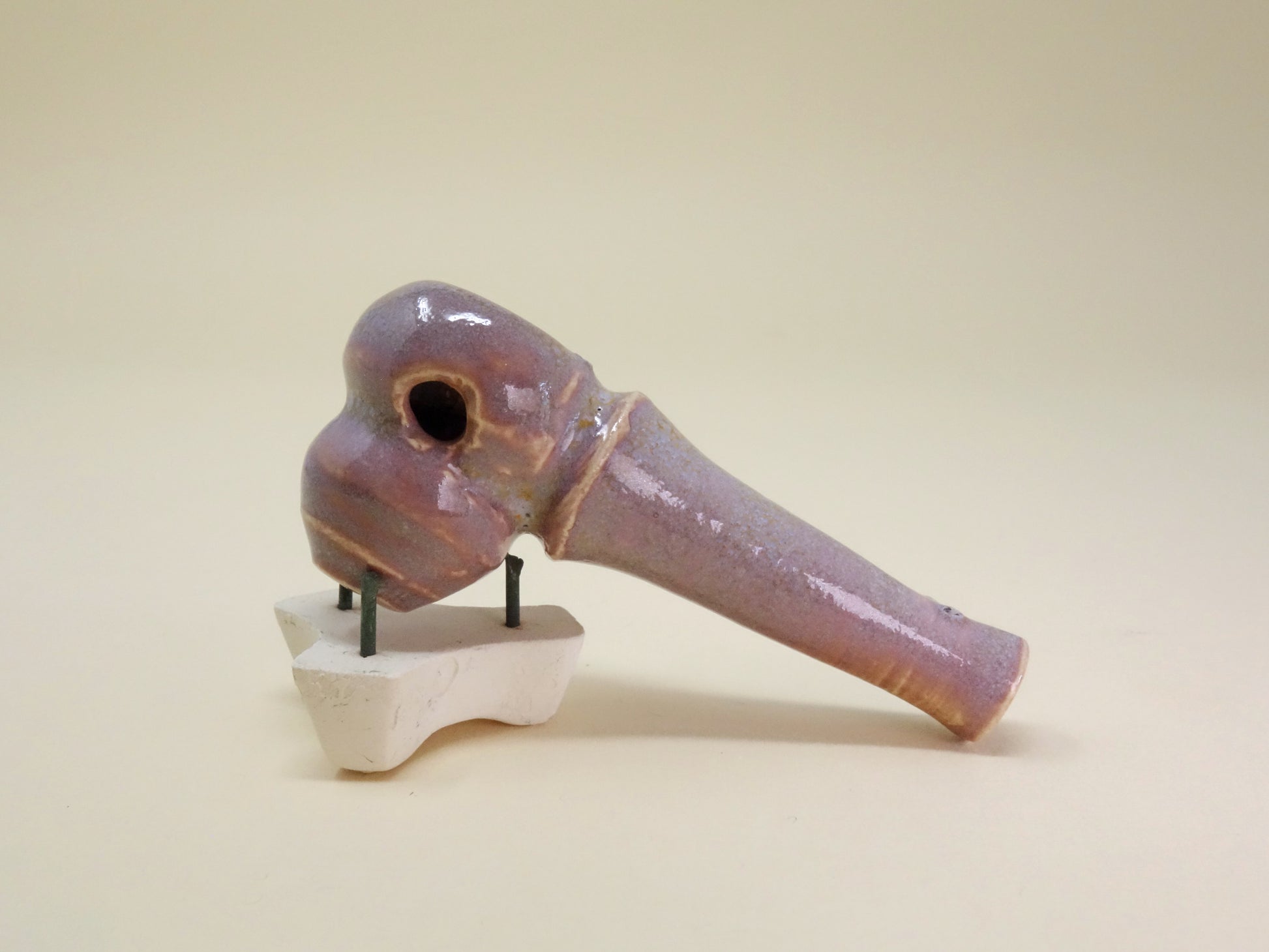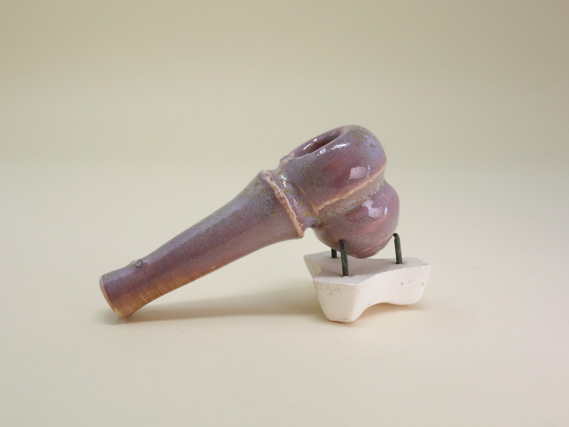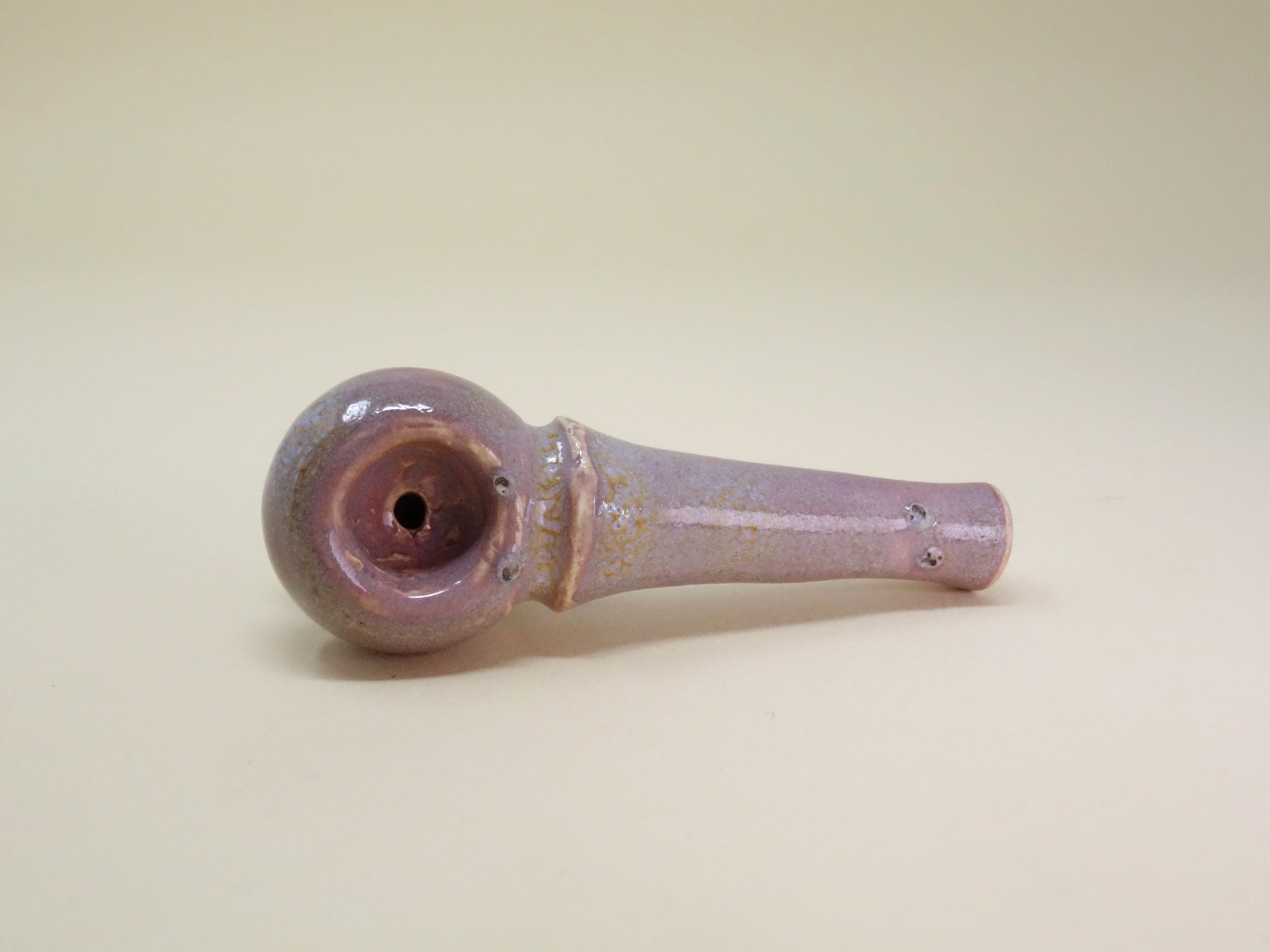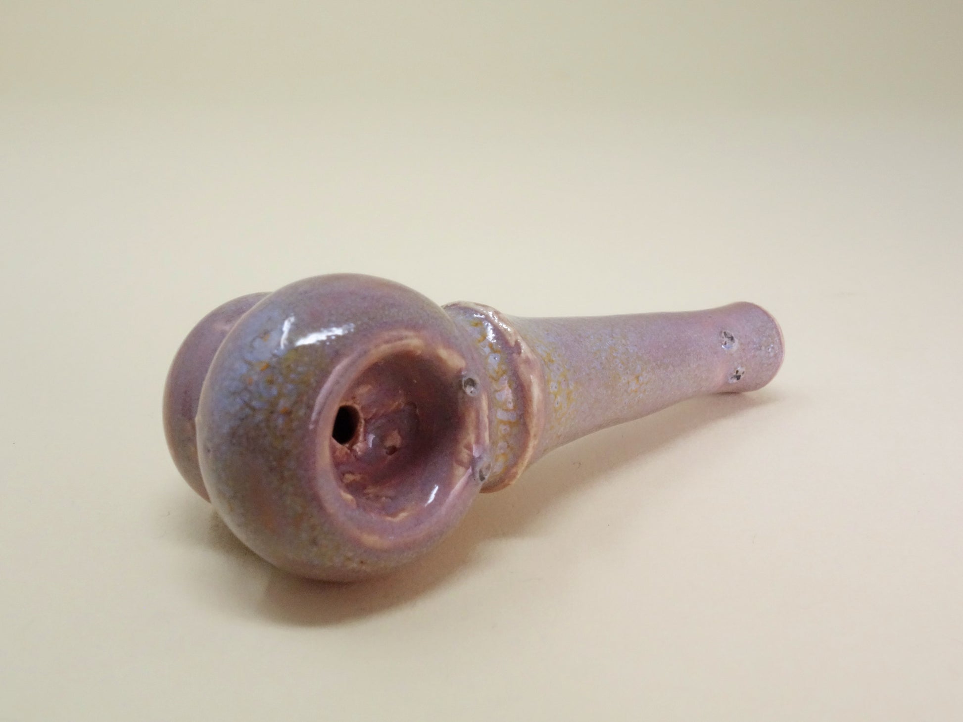 Just because you're little doesn't mean you can't pack a punch. Lilac Fist Fights is a double-stacked bowl with a short stem, made to fill the perfect hiking bowl perched on your fingertips. Its lavender glaze pools tones of sulfur and topaz, visible in bright sunlight. A lovely little adventure piece.