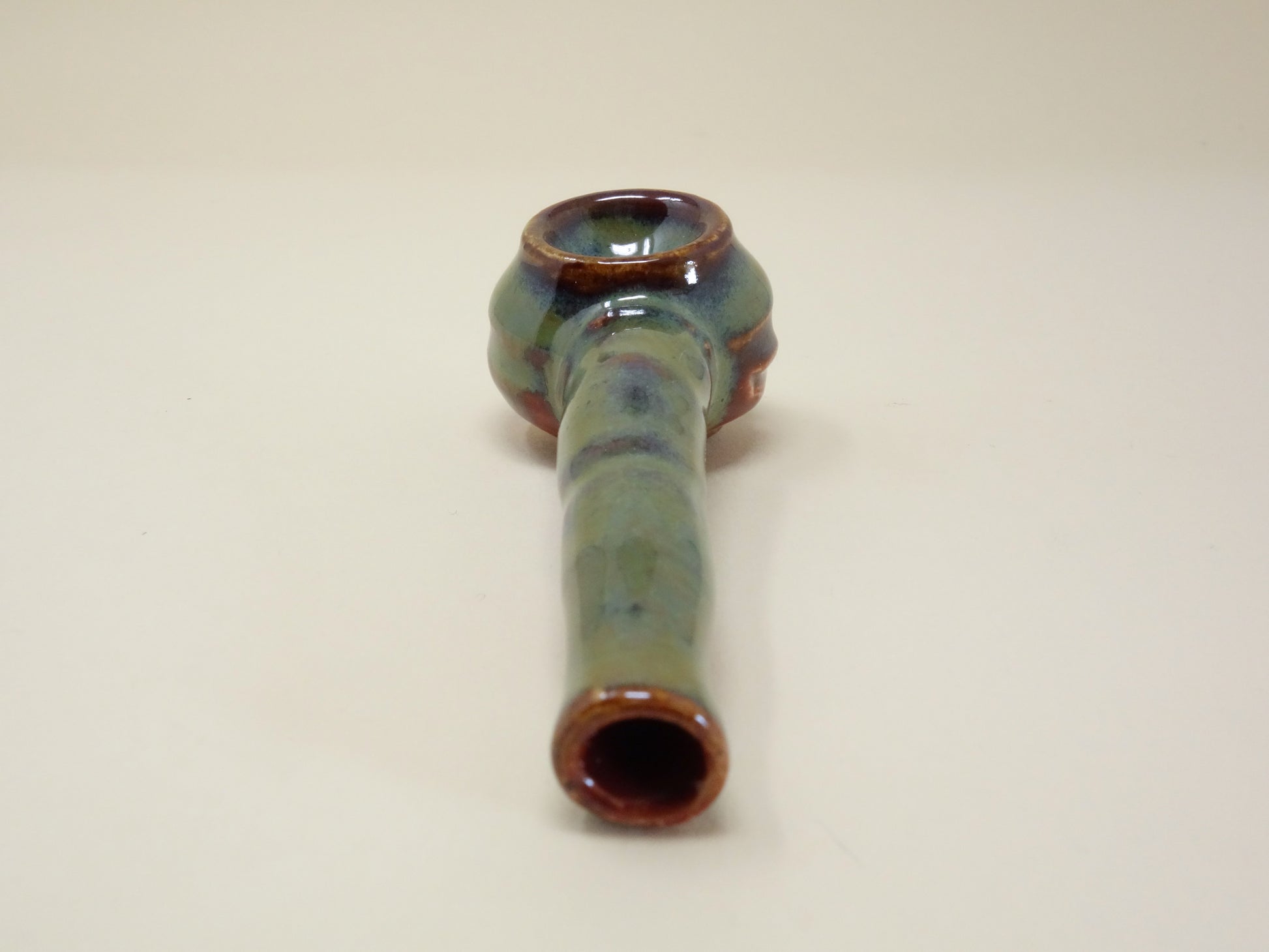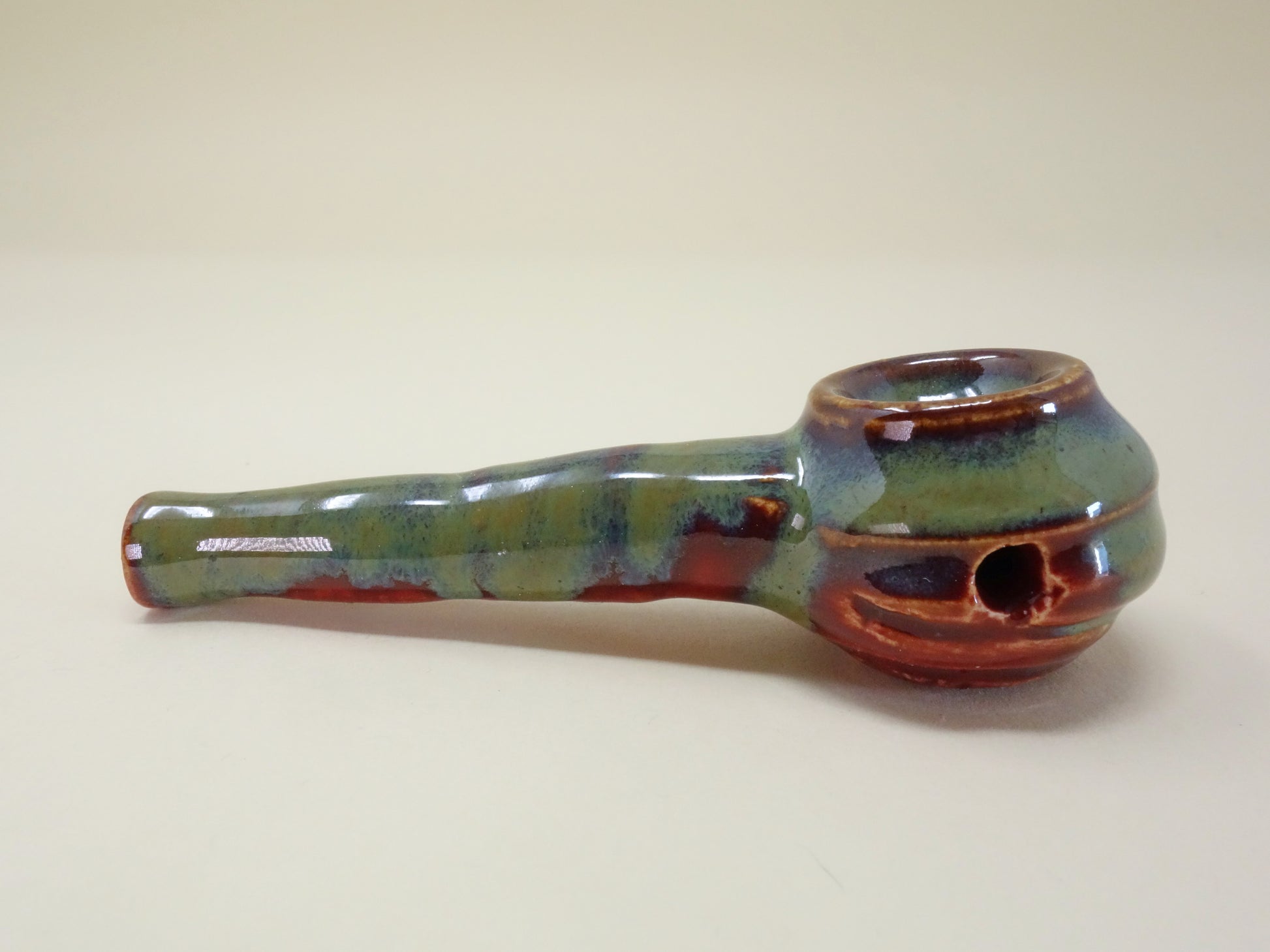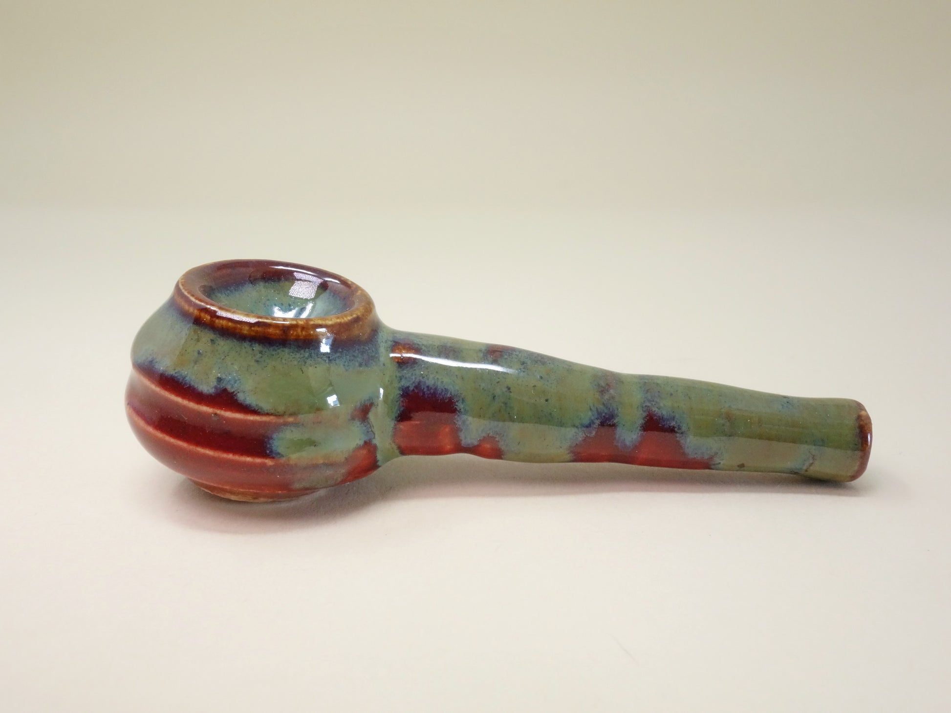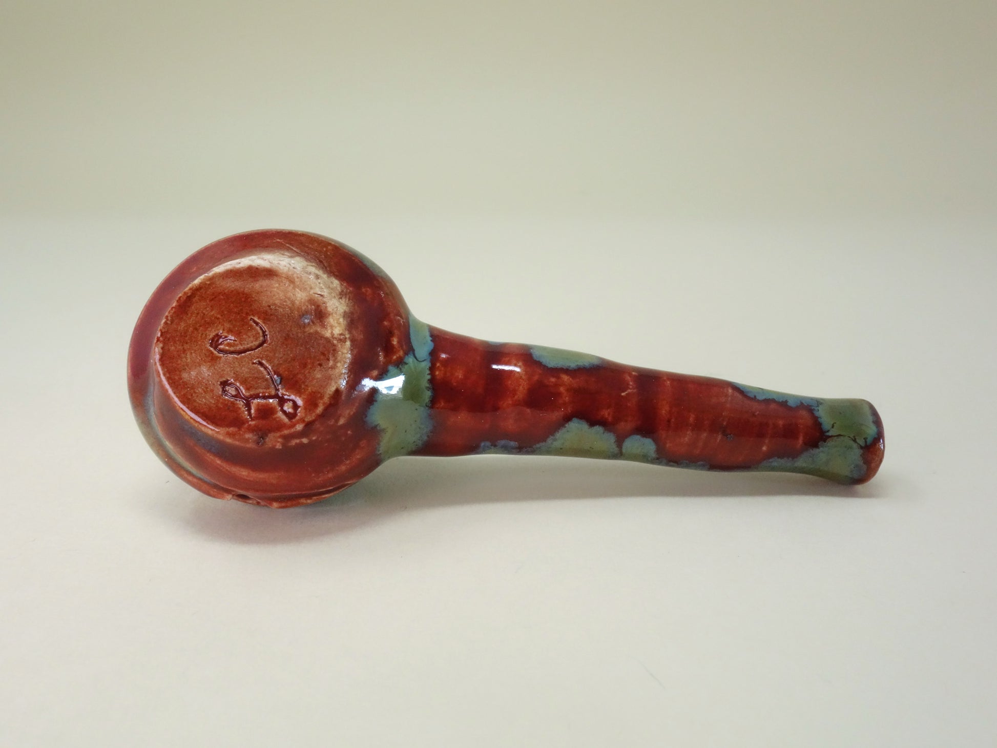With a crimson forest glaze combination and a single tooth adorning the bowl's center, Poison Dart Tooth is an electric anomaly created by a number of occurrences that, instead of making a terribly ugly piece, created a terribly pretty one. With a wide bowl and slight stem, this piece can be used at home or pocketed for travel.