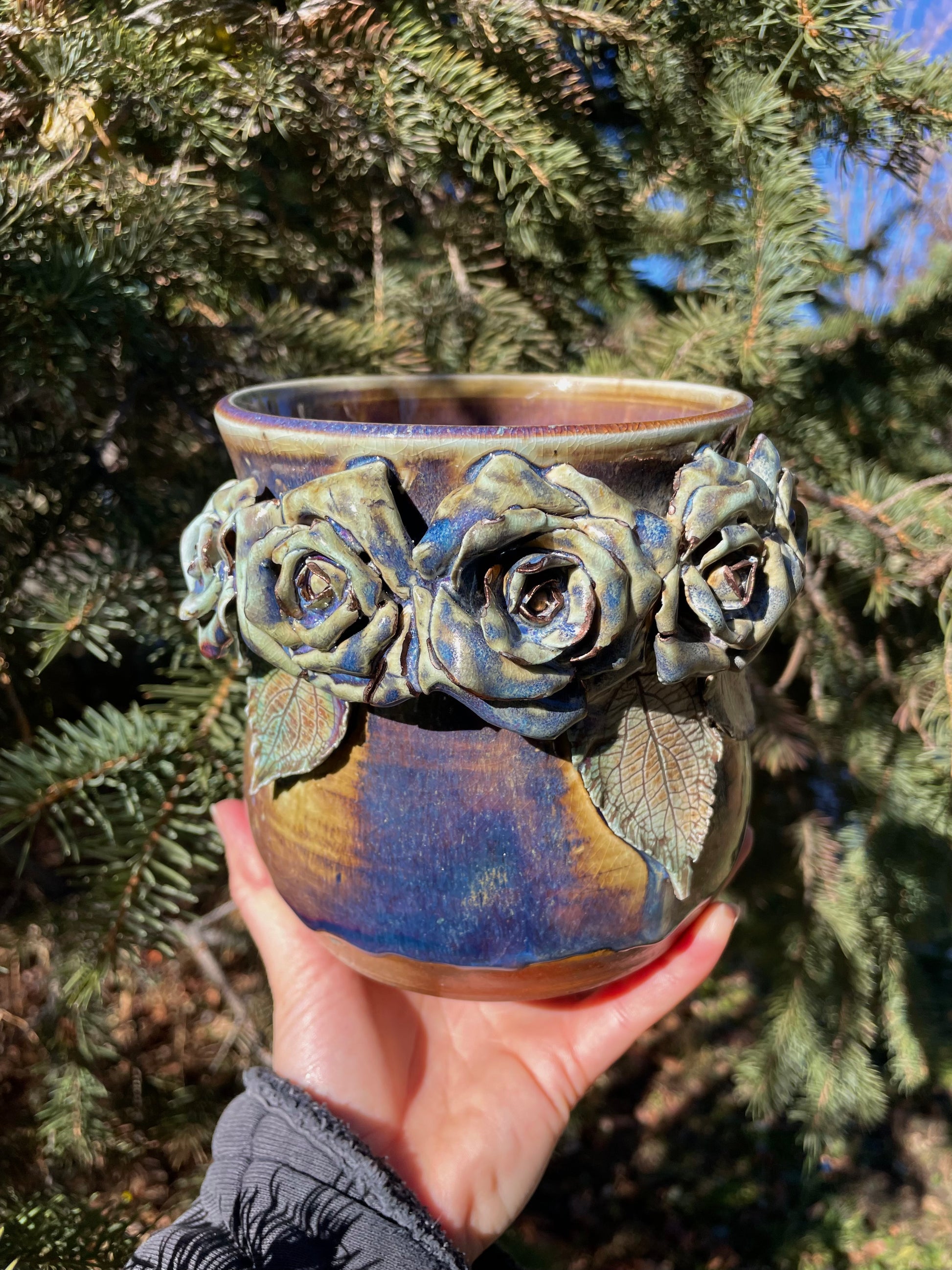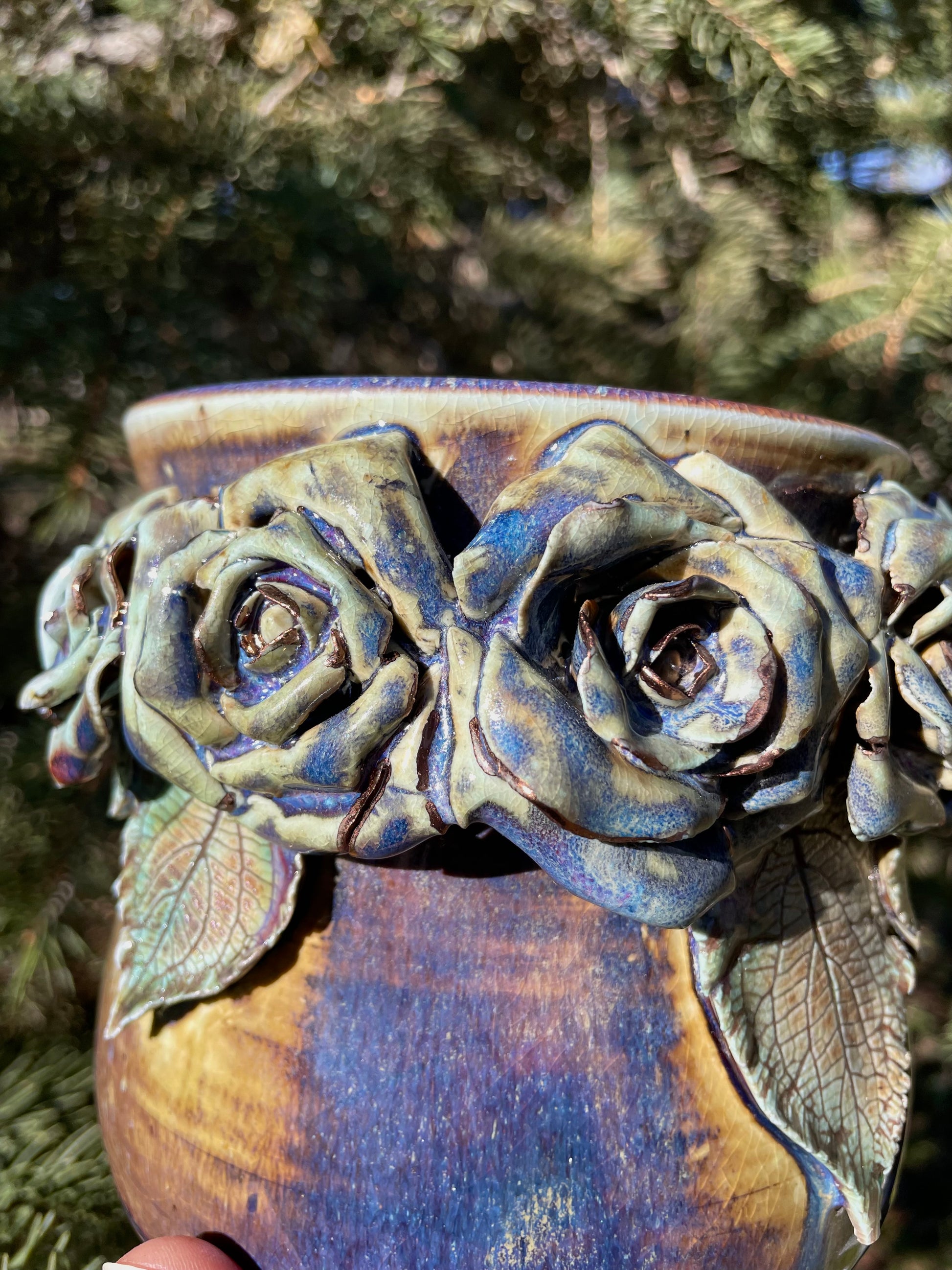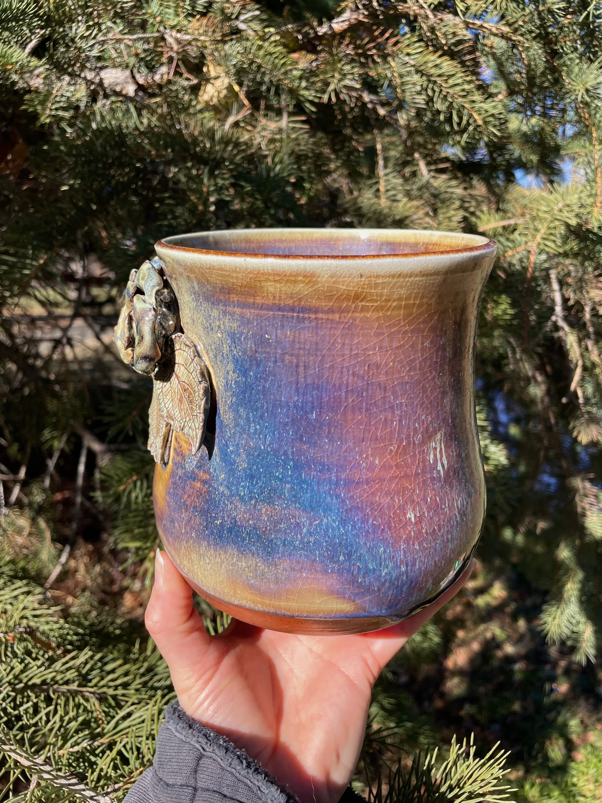Soda-fired, embellished with copper