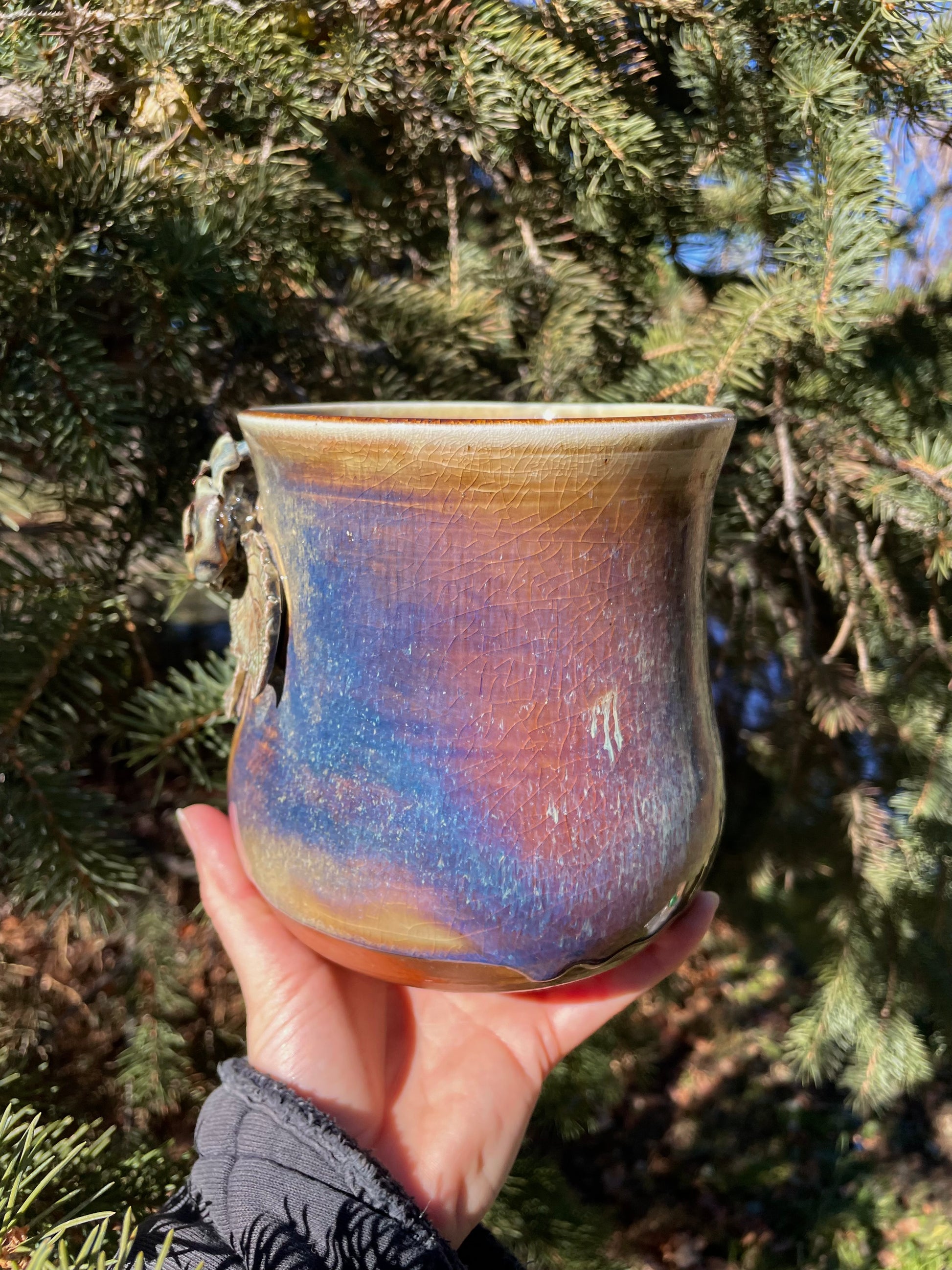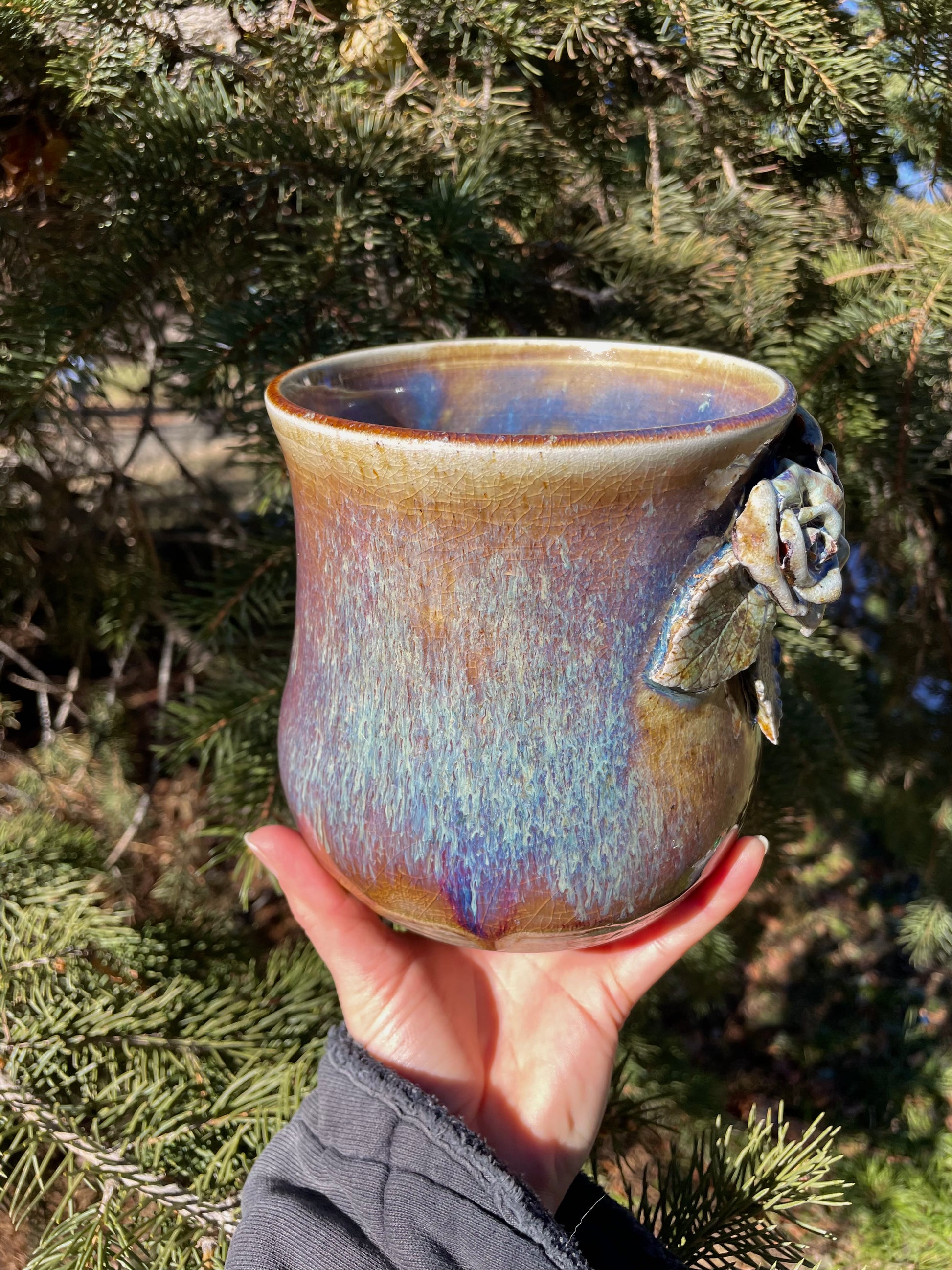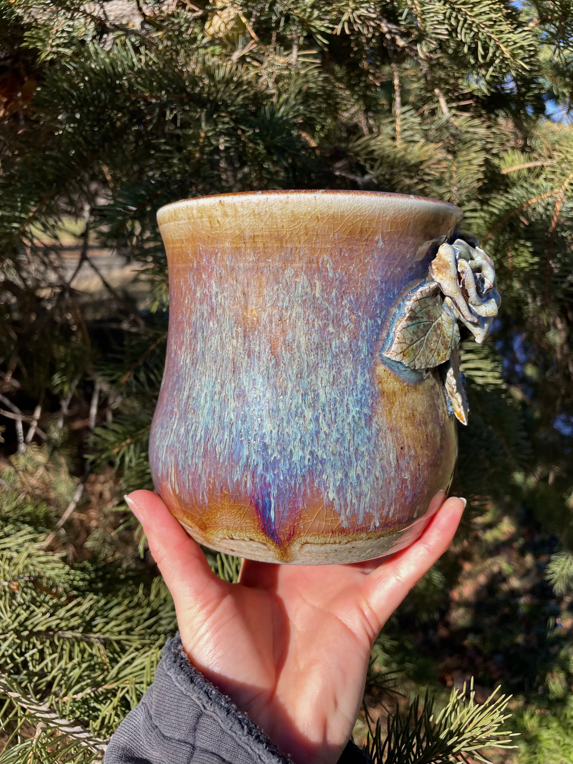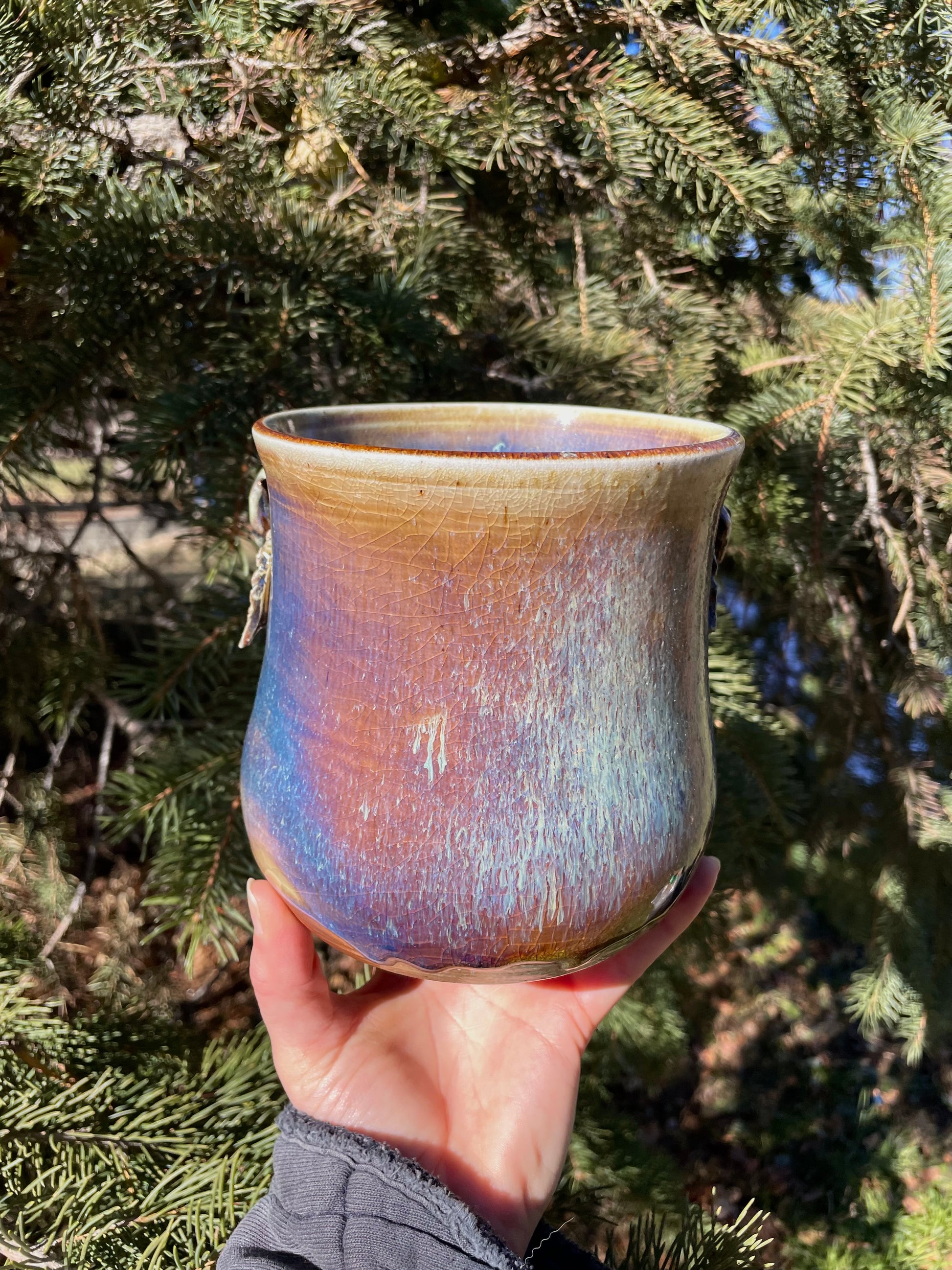 Soda-fired, embellished with copper