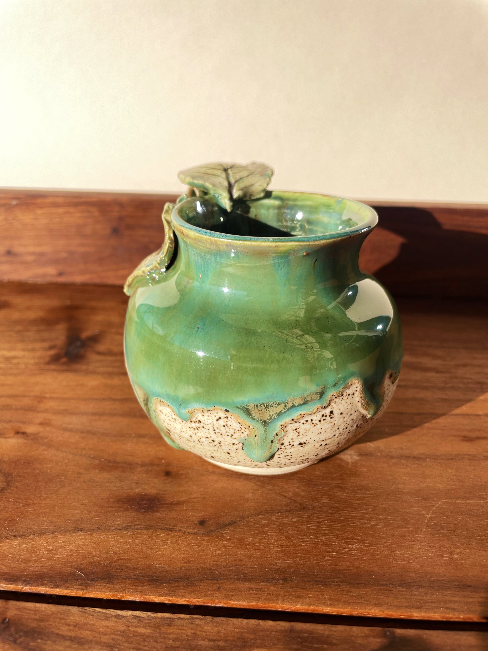 For the wanderers of emerald forests and dreamers of verdant lands, the Summer Spectrum mug is lush with green and blues dripping over a speckled body. Like malachite was melted down to a glaze, seafoam and cerulean hues wink through the wash.