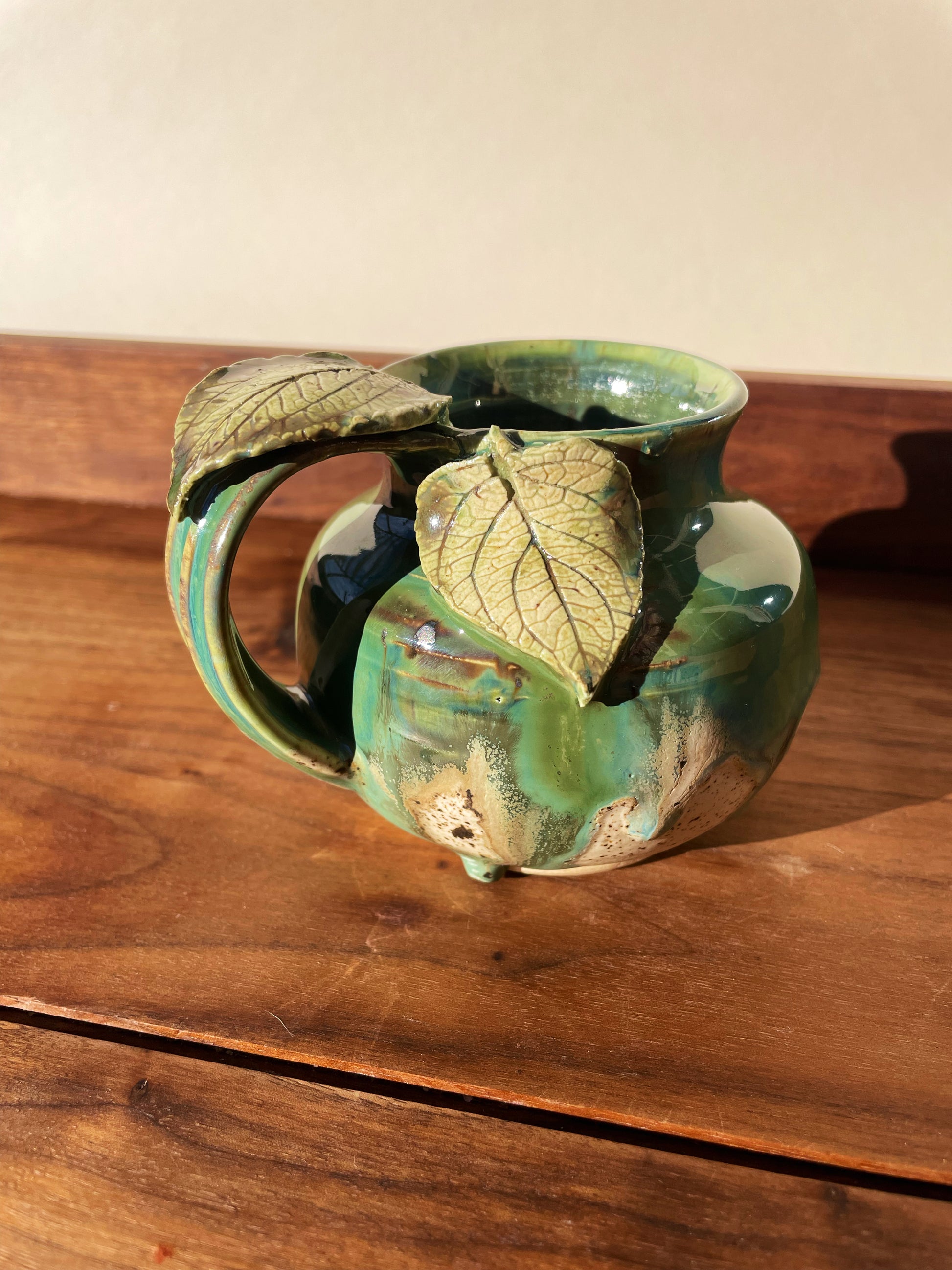 The leaves embellishing this mug were harvested from Lita Clay's texture farm. No plants were harmed in the making of this mug.
