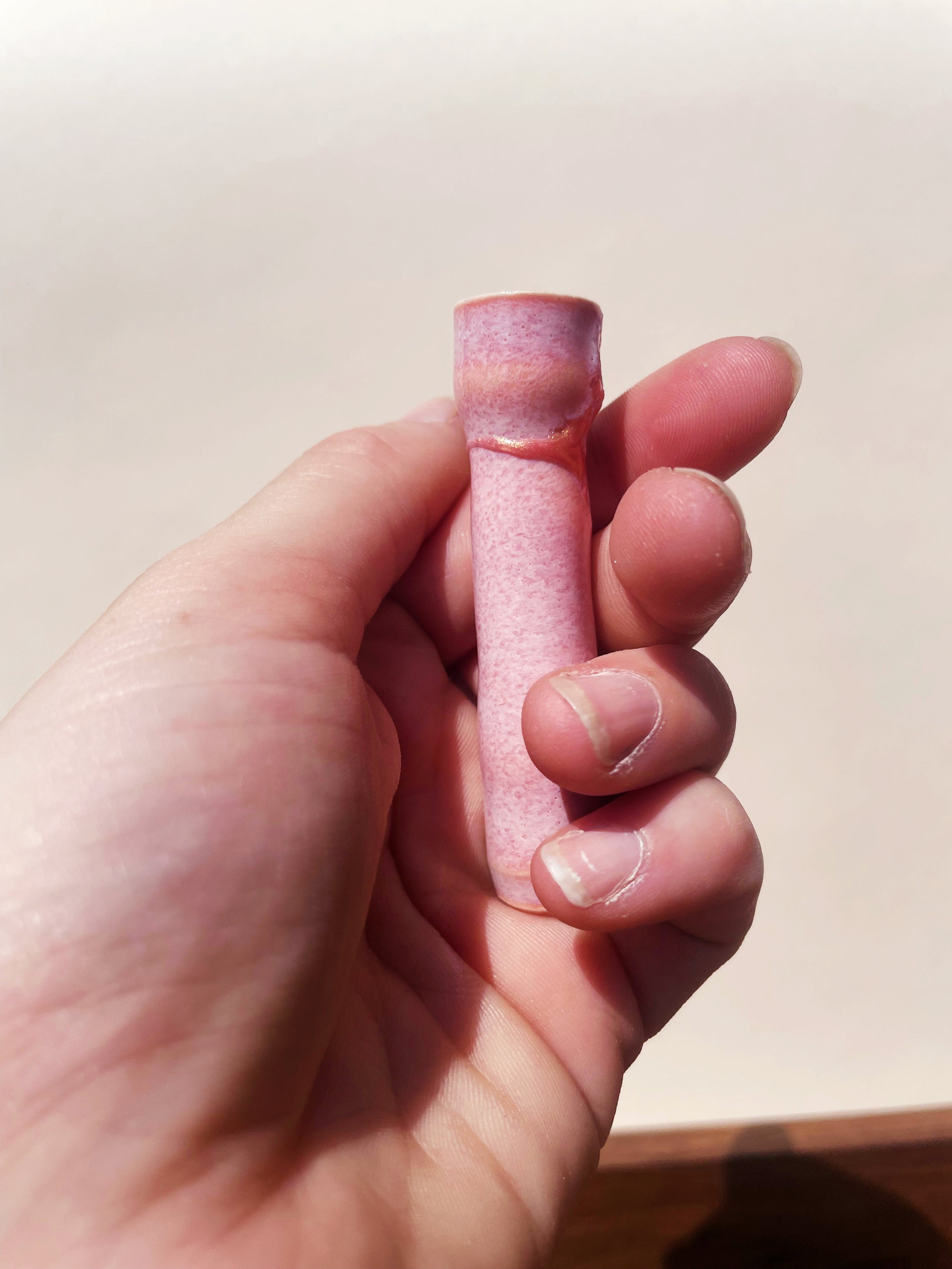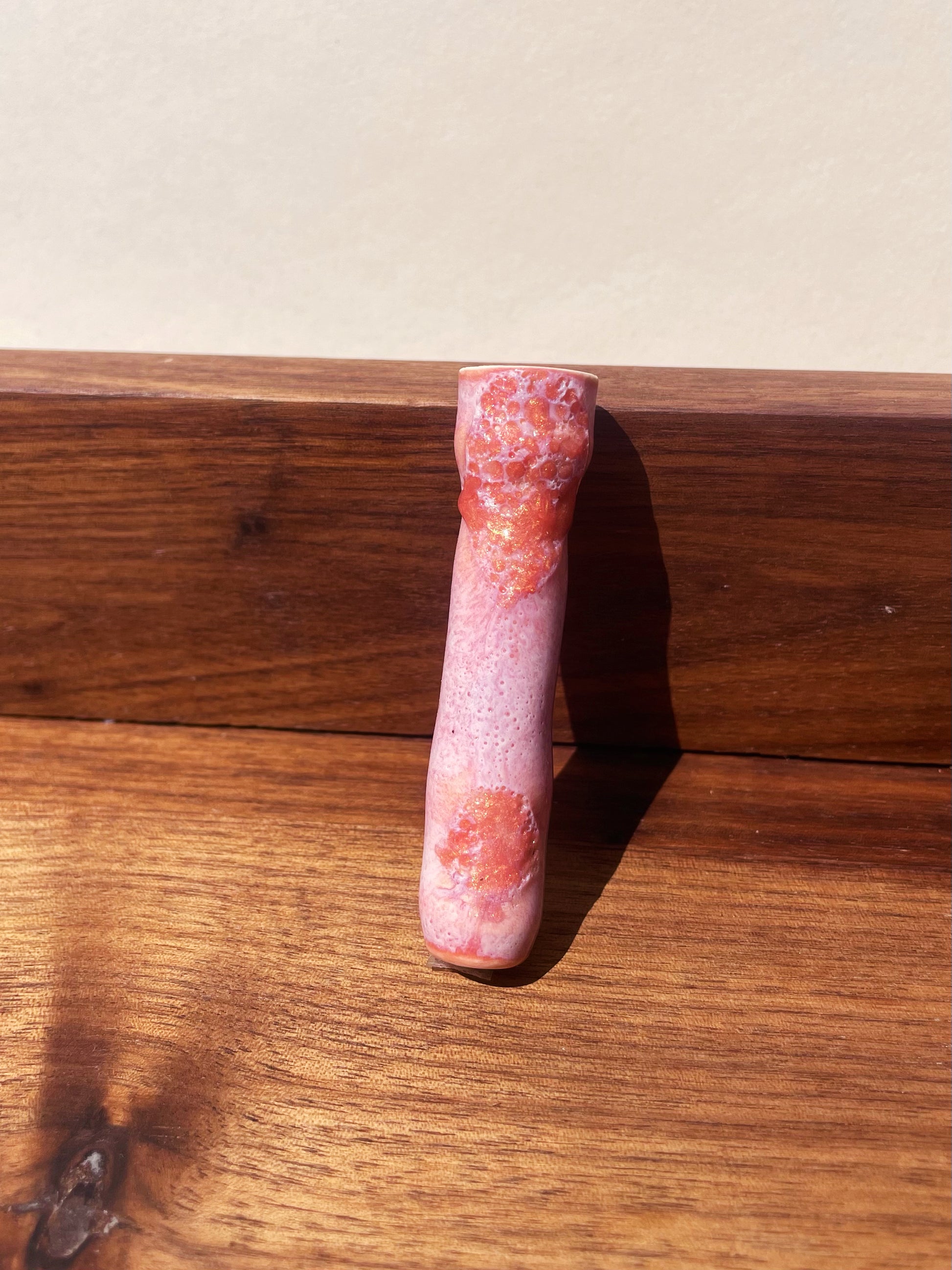 Perfect shell-pink on one side, a dappled sunset infection on the other. Not to worry—hand in hand, they work as a team to get you stoned.