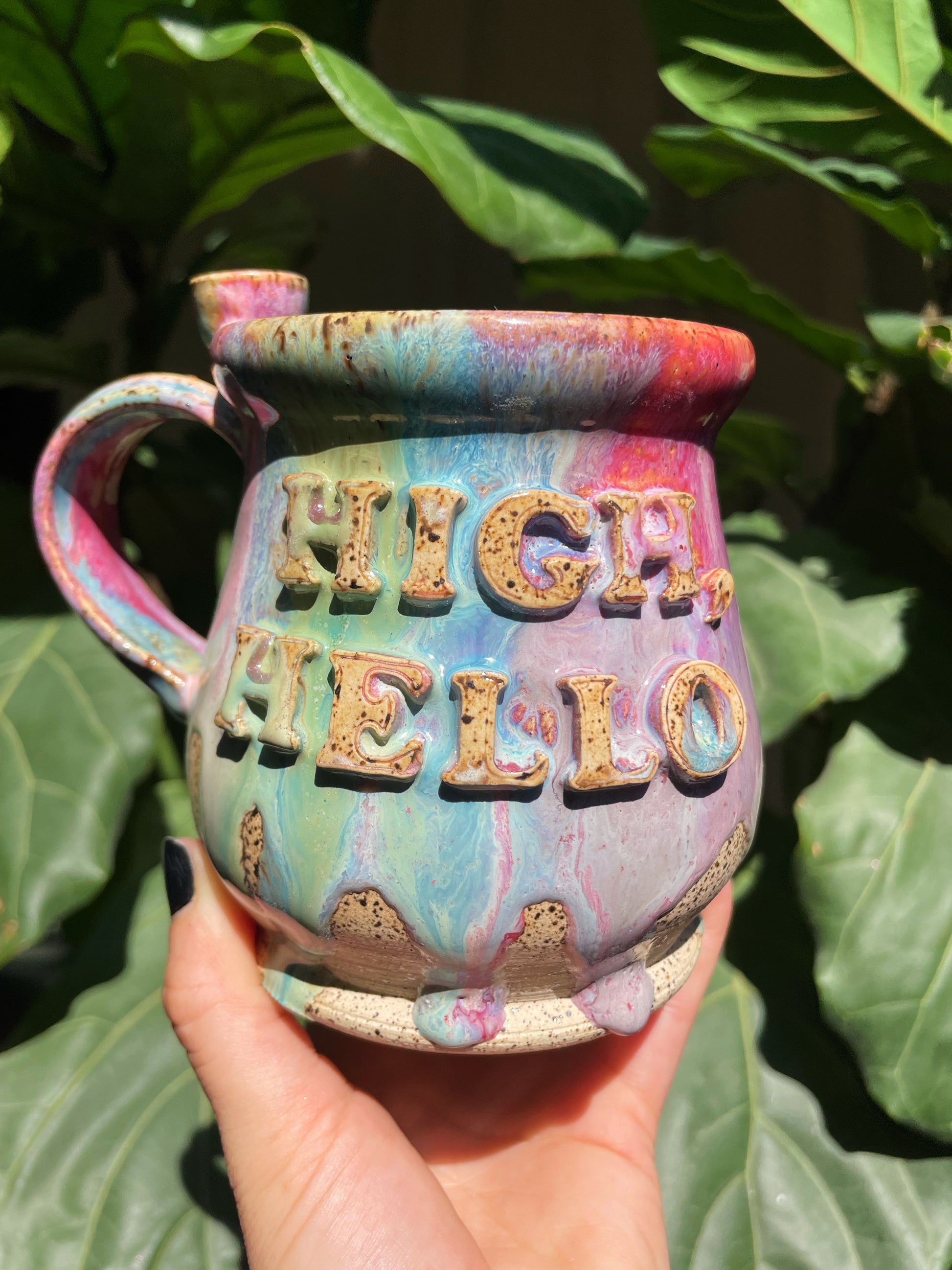 A functional Wake & Bake mug with an additional bowl for smoking flower.