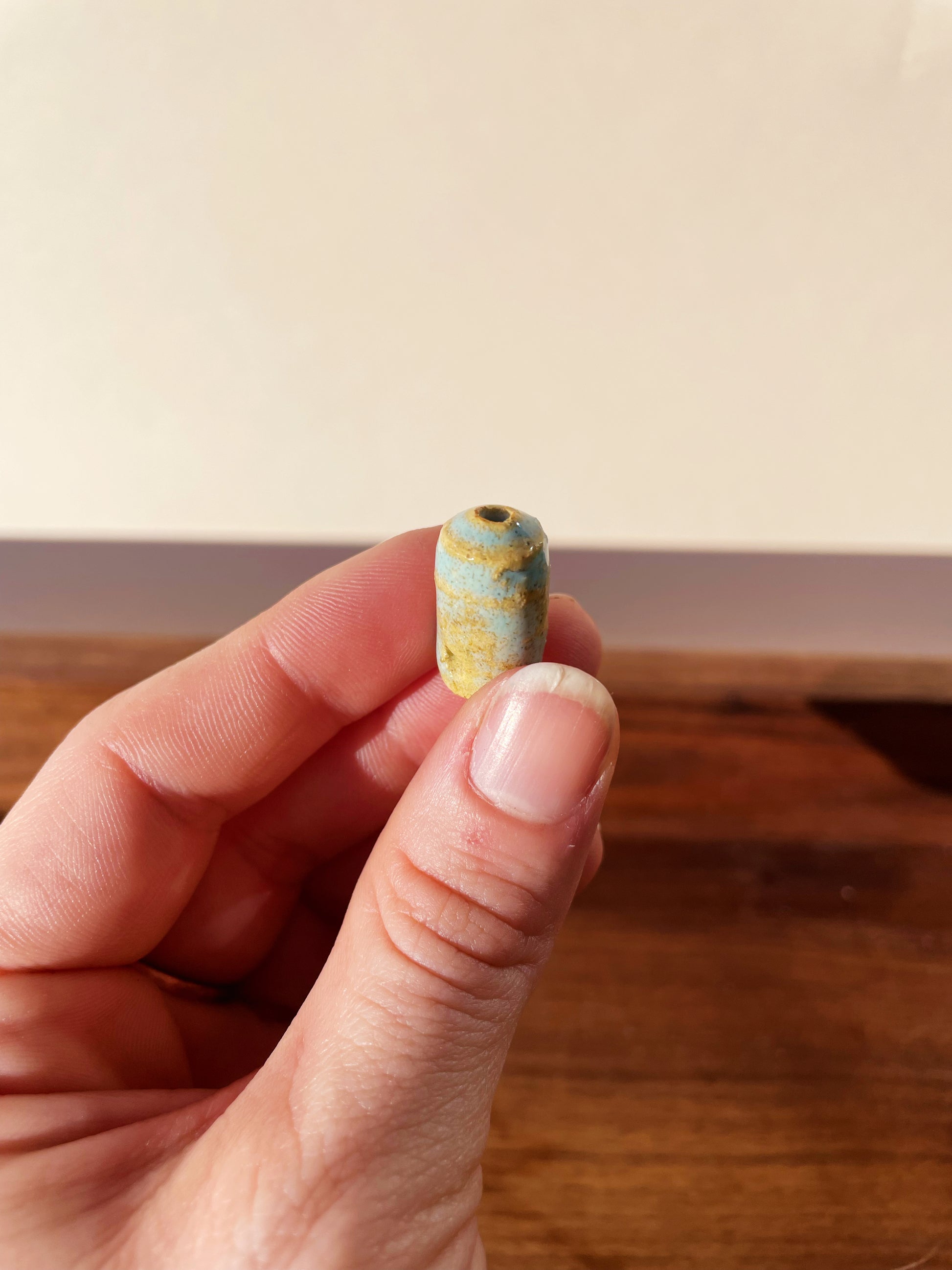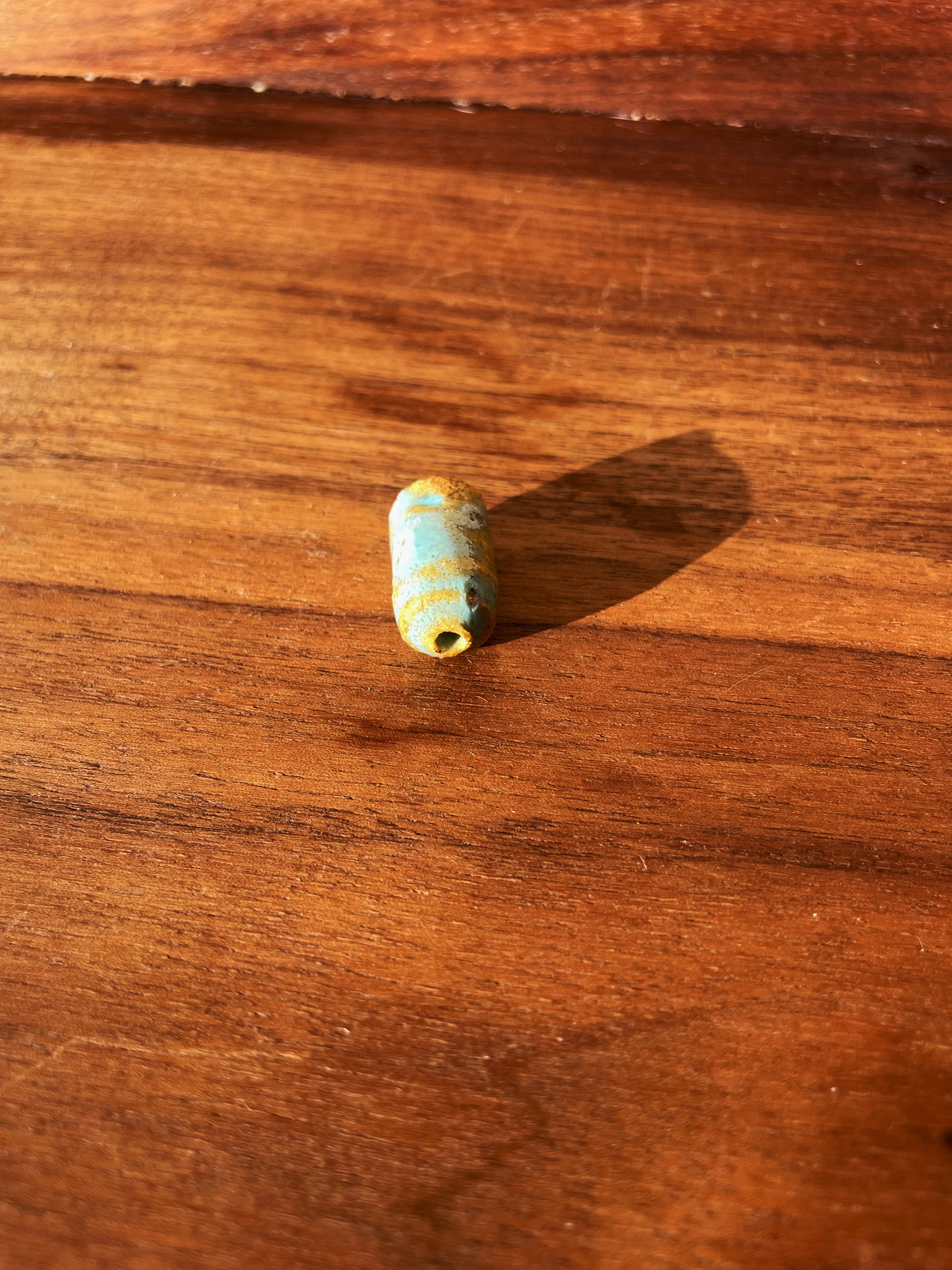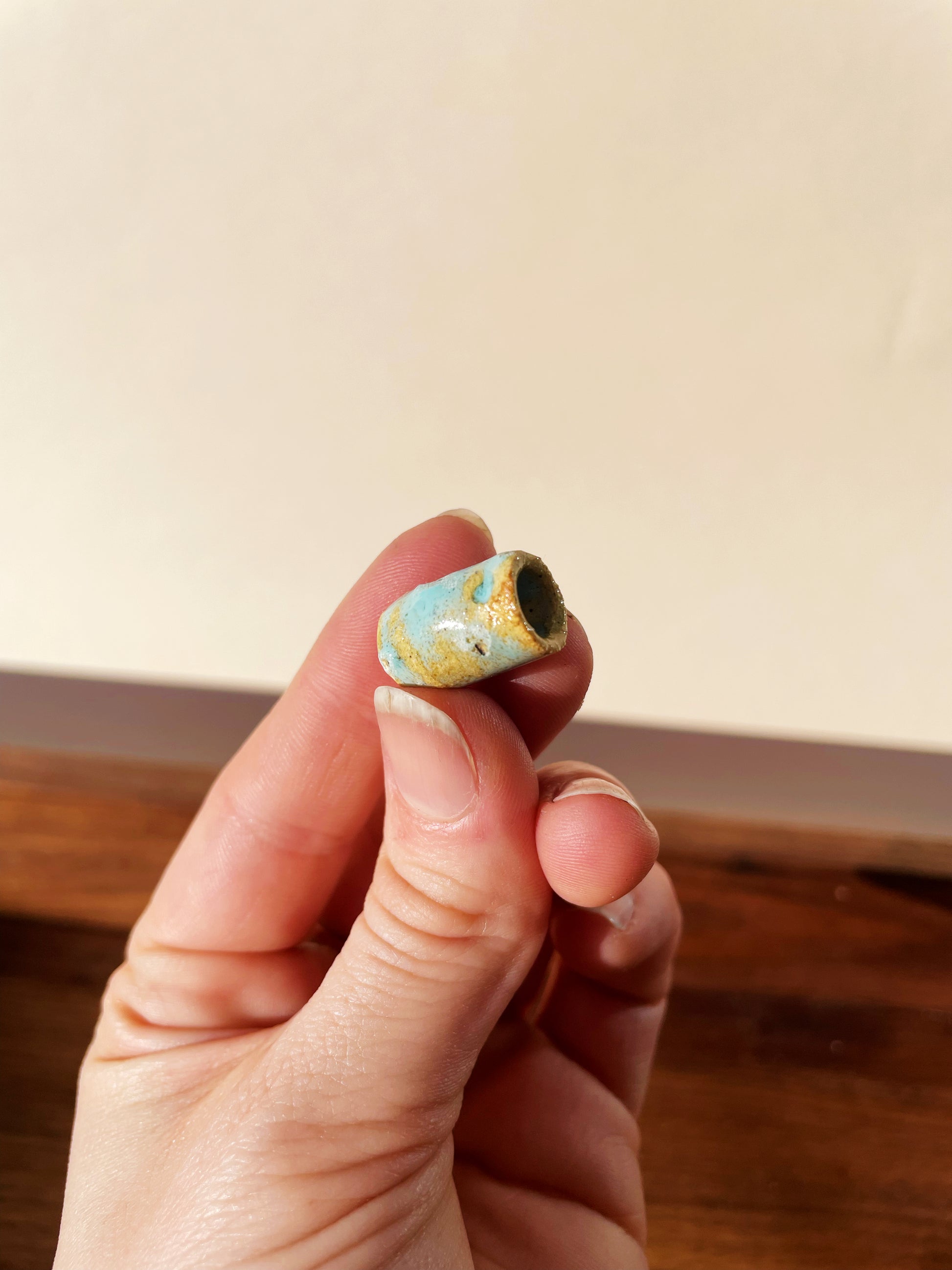 A short joint holder glazed in a vivid blue.